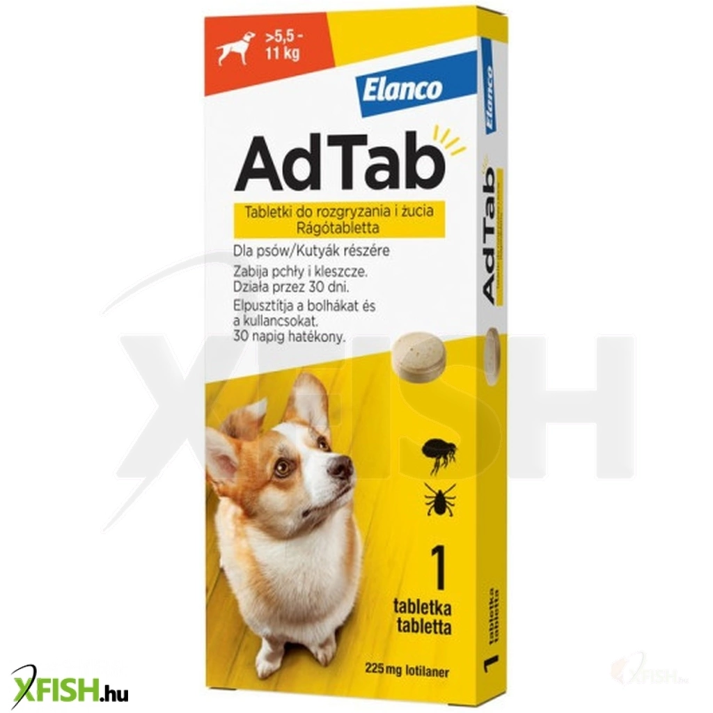AdTab 225 mg rágótabletta kutyák részére (> 5,5–11 kg)
