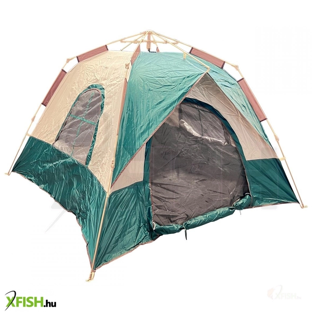 SILSTAR SÁTOR 1-3 személyes 2,3m x 2,3m x 1,50m. Automata sátor-szerkezet, mely csak néhány másodpercet vesz igénybe, hogy kinyíljon, ezzel kiküszöbölve a sátor állítással járó nehéz munkát. Ez a sátor kb. másfél perc alatt felállítható (lásd a videó linket), kis helyen elfér, összecsukva akkora mint egy kis méretű esernyő horgásszék. Ez nagyon megkönnyíti a sátor tárolását és hordozását is. A hordtáska erős kényelmes fülekkel van ellátva. A sátor elrakása kb. 5 perc. A sátor két oldalsó ablaka felnyitható az ablakokat szúnyogháló fedi. A sátornak 2 bejárata van melyeket szúnyogháló véd. Az ajtókon lévő szúnyogháló cipzárral nyitható zárható. A 2 ajtó és 2 nagy ablak segítségével folyamatosan hűsen tarthatjuk a sátorunkat még nagy melegben is. A sátorhoz tartoznak leszúró cölöpök melyekkel biztonságosan rögzíthetjük és ellenáll nagyobb szélnek is.