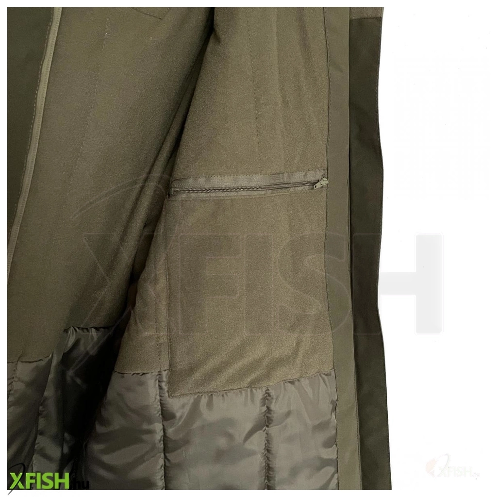 A SILSTAR Exclusive Line Thermo, thermo kabát. A ruha felülete kényelmes, puha tapintású teljesen vízhatlan, víztaszító anyagból készült, amely NEM SURROG, NEM AD KI HANGOT mozgás közben, így nagyon alacsony a zajszintje, un. whisper(suttogó) karakterisztikájú, éppen ezért ideális választás VADÁSZATHOZ is. A puha belső borítás alatt vastag, meleg, bevarrt PVC bélés található, így az nem csúszik el. A ruházat alapanyaga 100% magas kopásállóságú twill peach mikroszálas poliészter, mely különlegesen magas vízállóságú, 8000/800 mvp DE mindezek mellett PVC bevonattal is el van látva és MINDEN VARRATA RAGASZTOTT IS, ami által - A RUHA TELJESEN VÍZ-ESŐ-SZÉLÁLLÓ! A kabát külső részén 3 db vízmentesen zárható zseb található, belsejében 1 db nagy zárható és 1db óriási méretű hálós zseb fokozzák a kényelmi és prakikus funkciókat. A kabát gallérja magas, jól véd a szél ellen. A kapucninak szintén van gallérja, mely tépőzáras így dupla védelmet biztosít. A kabát tépőzárral állítható mandzsettája is puha, meleg, bélelt. A kapucni levehető, jól védi a nyakat a széltől-esőtől, a fejet, de összezárt tépőzárral az állat sőt még szánkat is megvédi a hideg széltől. A kabát derékrészét rugalmas belső szalag tartja a testünk mellett, így nem fúj alá a szél. Az összes cipzár szél- és vízálló.