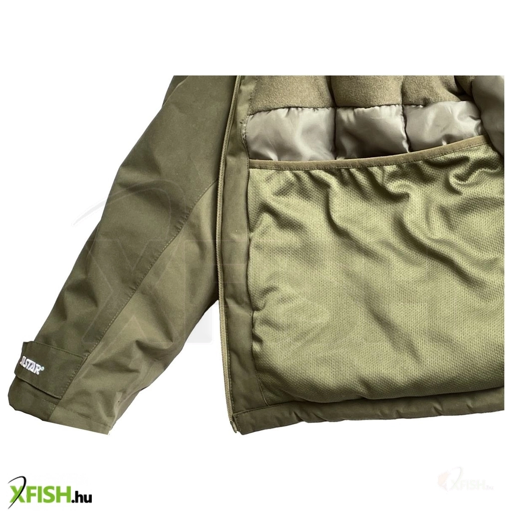 A SILSTAR Exclusive Line Thermo, thermo kabát. A ruha felülete kényelmes, puha tapintású teljesen vízhatlan, víztaszító anyagból készült, amely NEM SURROG, NEM AD KI HANGOT mozgás közben, így nagyon alacsony a zajszintje, un. whisper(suttogó) karakterisztikájú, éppen ezért ideális választás VADÁSZATHOZ is. A puha belső borítás alatt vastag, meleg, bevarrt PVC bélés található, így az nem csúszik el. A ruházat alapanyaga 100% magas kopásállóságú twill peach mikroszálas poliészter, mely különlegesen magas vízállóságú, 8000/800 mvp DE mindezek mellett PVC bevonattal is el van látva és MINDEN VARRATA RAGASZTOTT IS, ami által - A RUHA TELJESEN VÍZ-ESŐ-SZÉLÁLLÓ! A kabát külső részén 3 db vízmentesen zárható zseb található, belsejében 1 db nagy zárható és 1db óriási méretű hálós zseb fokozzák a kényelmi és prakikus funkciókat. A kabát gallérja magas, jól véd a szél ellen. A kapucninak szintén van gallérja, mely tépőzáras így dupla védelmet biztosít. A kabát tépőzárral állítható mandzsettája is puha, meleg, bélelt. A kapucni levehető, jól védi a nyakat a széltől-esőtől, a fejet, de összezárt tépőzárral az állat sőt még szánkat is megvédi a hideg széltől. A kabát derékrészét rugalmas belső szalag tartja a testünk mellett, így nem fúj alá a szél. Az összes cipzár szél- és vízálló.