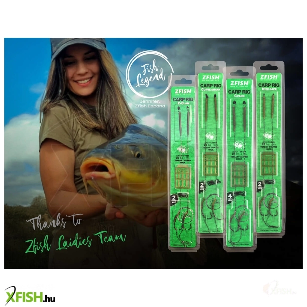 A Z Fish Z Claw Carp Rig előkötött horog egy kész, azonnal használható pontyozó előke, amelyet tartós fonott zsinórral és rendkívül éles, teflonbevonatú Z Claw horoggal szereltek. A horog formája gyors és biztos akadást ad, míg az előke lágy anyaga természetes csalimozgást biztosít. A szereléken anti-tangle hüvely, horogbefordító és mikrocsalistopper is található, így a csali mindig megfelelő pozícióba kerül. A gyorskapcsos rögzítés megkönnyíti a cserét, így pillanatok alatt új előkét tehetsz fel. Különböző horogméretekben kapható, ezért könnyen igazítható a csali méretéhez és a horgászhelyzethez. Ideális választás ponty és amur horgászatához, amikor megbízható, gondosan felépített előkére van szükség.