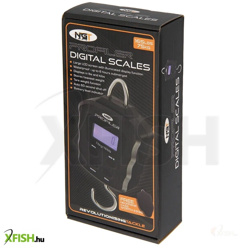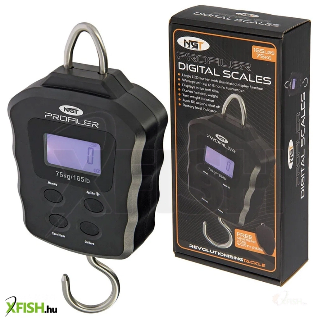 Az NGT Profiler Scales nagy teherbírású digitális mérleg akár 75 kg-ig képes pontos mérést biztosítani, így ideális választás nagytestű pontyok és más kapitális halak mérlegeléséhez. Nagyméretű háttérvilágításos LCD kijelzője gyenge fényviszonyok között is jól leolvasható, a készülék pedig vízálló kivitelének köszönhetően akár hosszabb ideig is ellenáll a nedvességnek. Több praktikus funkcióval rendelkezik, mint a kg/lb váltás, tarálás, a legnagyobb mért súly elmentése, valamint az automatikus kikapcsolás, ami kíméli az elemeket. A mérleg akkumulátorszint-jelzővel is el van látva, így időben tudsz cserélni, ha szükséges. A csomag tartalmaz egy neoprén védőtokot, amely biztonságos szállítást és tárolást garantál. Kompakt mérete és erős felépítése miatt minden horgásznak megbízható társ a pontos és biztonságos mérlegeléshez.