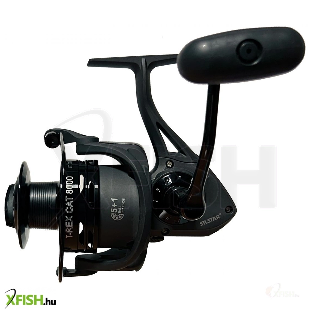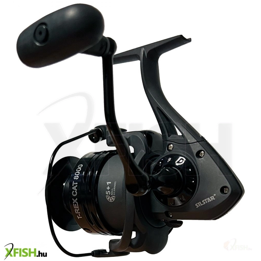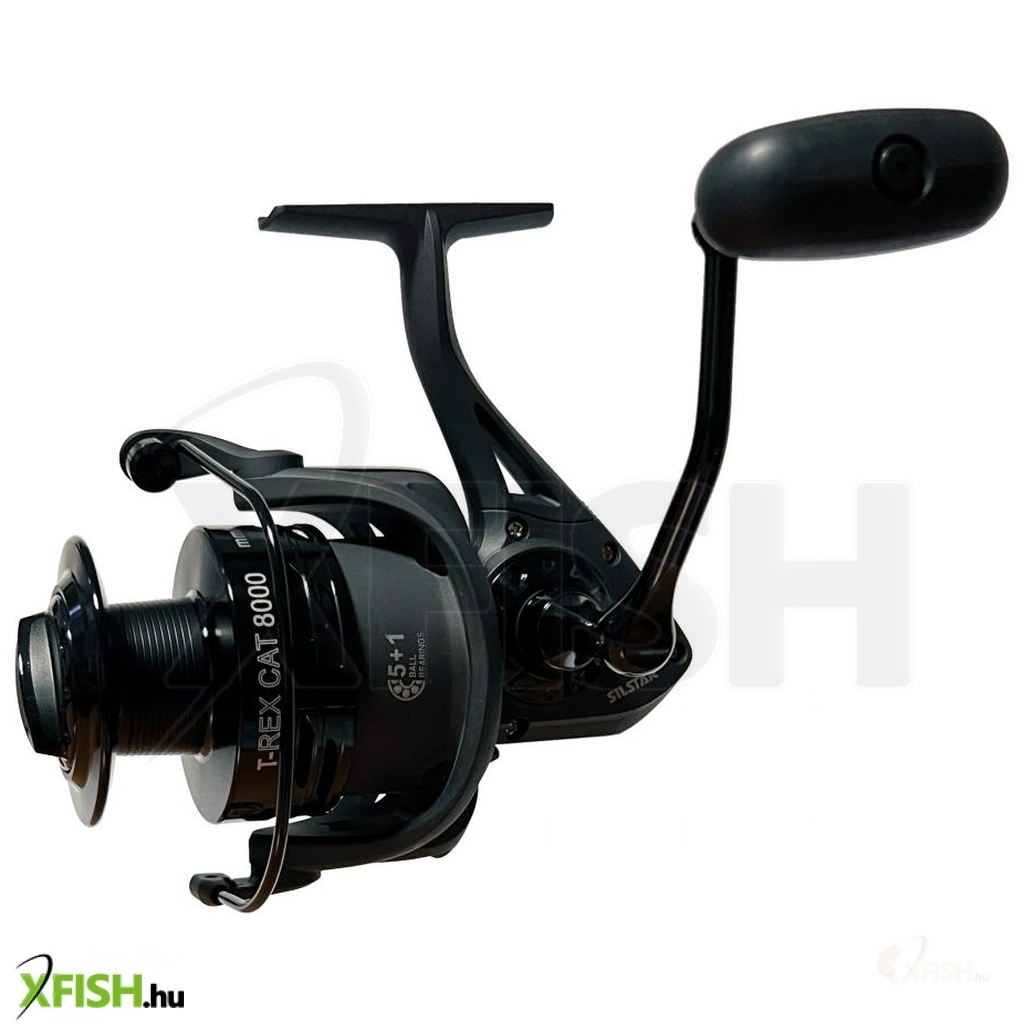 SILSTAR T-REX CAT FISH 8000 5+1csapágy. A SILSTAR T-REX sorozat új tagja. Az orsó modern kivitelezésű, nagy teherbírású, nagy kapacitású. Ezt használhatja ki a harcsa horgászatánál. Az orsó nem csak harcsázásra kiváló, de nagyméretű dobja révén ponty horgászatnál, illetve bármilyen nagytestű hal horgászatánál jól teljesít a nagy erőtaltalékainak és nagy kapacitásának köszenhetően. A nagyméretű fém dobnak köszönhetően, egyetlen hal kicsörlőzése sem fog gondot okozni. Az orsó fejlesztésnél a SILSTAR csapat célja a nagy teherbírás, kiváló futás, párhuzamos zsinórkép és a hoszú élettartam volt. Ezért került az orsóba 5db csapágy és 1db visszaforgásgátló csapágy. Megbízható és kiforrott technikát, már több éve fejleszti, finomítja a SILSTAR tervező gárdája. A többéves gyártás tapasztalat és a minőségi alapanyagok széleskörű használata garantálja a minőséget és megbízhatóságot. Az orsó minden alkatrésze jó minőségű alapanyagokból készült, többek között az 5db rozsdamentes acél csapágy, az azonnali visszaforgás gátló csapágy, az erős, ütésálló ABS-Grafit orsóház, ütésálló ABS-Grafit rotor, az orsó erősített alumínium dobja, a jól állítható, erős, nagy-lamellás első fékrendszere, a zsinór csavarodását gátló görgője, az S-CURVE dob emelő rendszere, a vastag rozsdamentes acél főtengelye, a nagyméretű jó fogást biztosító fém hajtókar és csúszásgátlós fogantyúja. Az orsó alkatrészei szépen illeszkednek egymásba és a test sem deformálódik, még extrém terhelésnél sem. Fogaskerekei is felül vannak tervezve, hogy hosszú használat után se mehessenek tönkre. Minderhez hozzájárul az alacsony áttétel is 4.1:1.