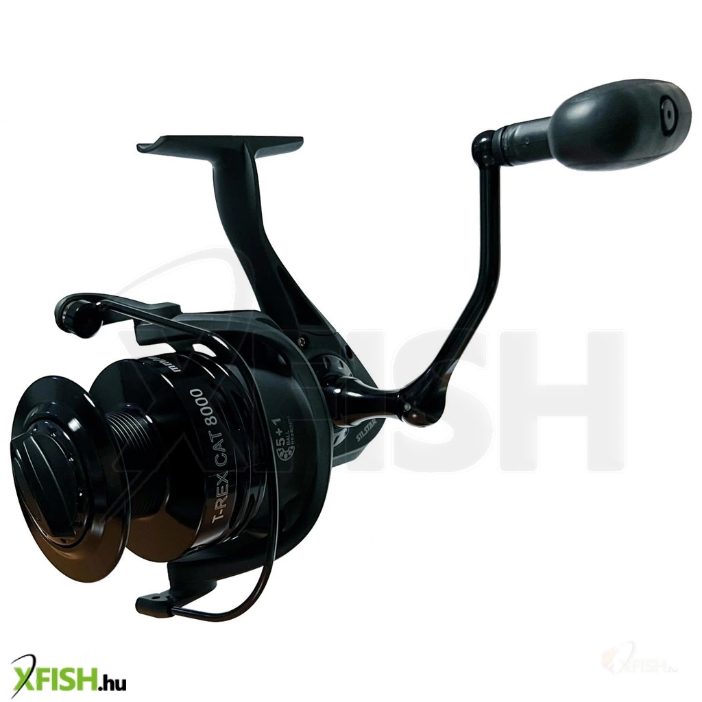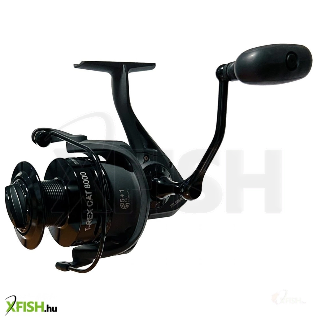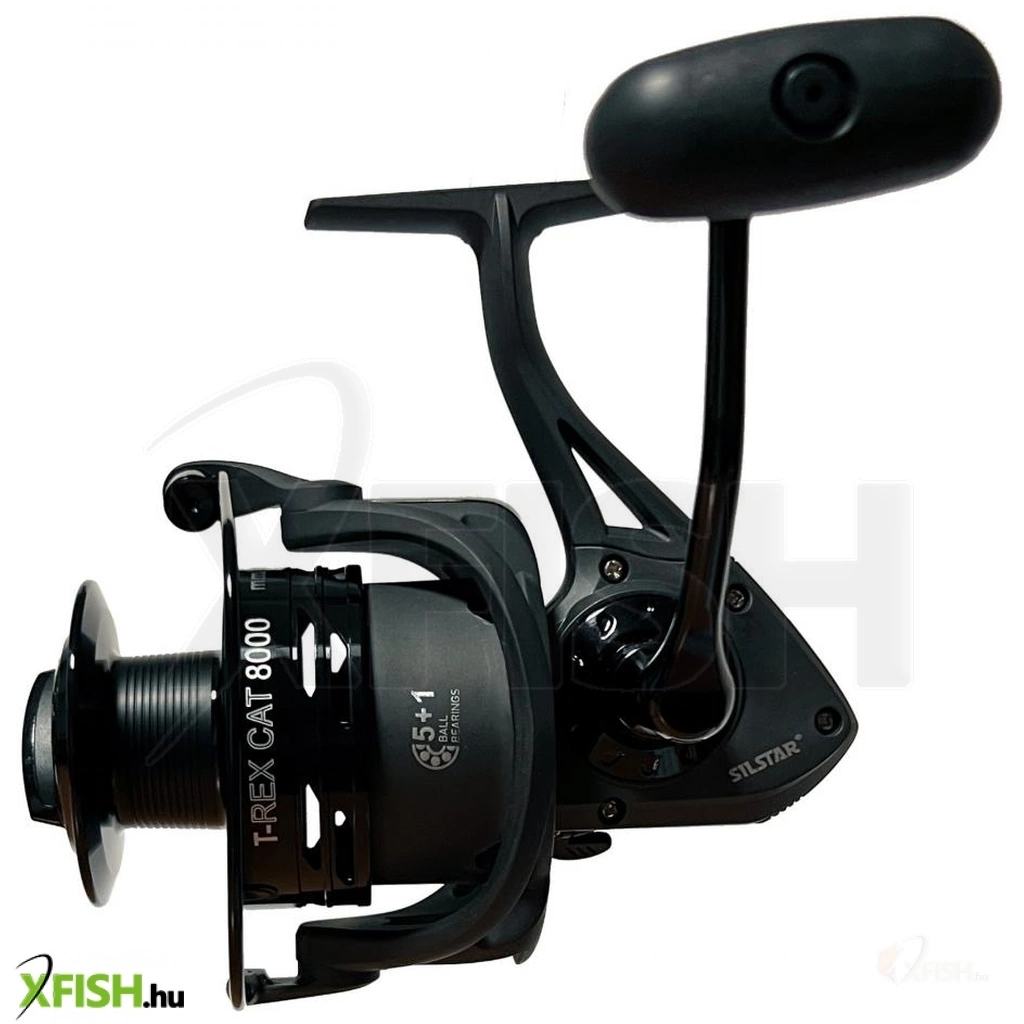 SILSTAR T-REX CAT FISH 8000 5+1csapágy. A SILSTAR T-REX sorozat új tagja. Az orsó modern kivitelezésű, nagy teherbírású, nagy kapacitású. Ezt használhatja ki a harcsa horgászatánál. Az orsó nem csak harcsázásra kiváló, de nagyméretű dobja révén ponty horgászatnál, illetve bármilyen nagytestű hal horgászatánál jól teljesít a nagy erőtaltalékainak és nagy kapacitásának köszenhetően. A nagyméretű fém dobnak köszönhetően, egyetlen hal kicsörlőzése sem fog gondot okozni. Az orsó fejlesztésnél a SILSTAR csapat célja a nagy teherbírás, kiváló futás, párhuzamos zsinórkép és a hoszú élettartam volt. Ezért került az orsóba 5db csapágy és 1db visszaforgásgátló csapágy. Megbízható és kiforrott technikát, már több éve fejleszti, finomítja a SILSTAR tervező gárdája. A többéves gyártás tapasztalat és a minőségi alapanyagok széleskörű használata garantálja a minőséget és megbízhatóságot. Az orsó minden alkatrésze jó minőségű alapanyagokból készült, többek között az 5db rozsdamentes acél csapágy, az azonnali visszaforgás gátló csapágy, az erős, ütésálló ABS-Grafit orsóház, ütésálló ABS-Grafit rotor, az orsó erősített alumínium dobja, a jól állítható, erős, nagy-lamellás első fékrendszere, a zsinór csavarodását gátló görgője, az S-CURVE dob emelő rendszere, a vastag rozsdamentes acél főtengelye, a nagyméretű jó fogást biztosító fém hajtókar és csúszásgátlós fogantyúja. Az orsó alkatrészei szépen illeszkednek egymásba és a test sem deformálódik, még extrém terhelésnél sem. Fogaskerekei is felül vannak tervezve, hogy hosszú használat után se mehessenek tönkre. Minderhez hozzájárul az alacsony áttétel is 4.1:1.