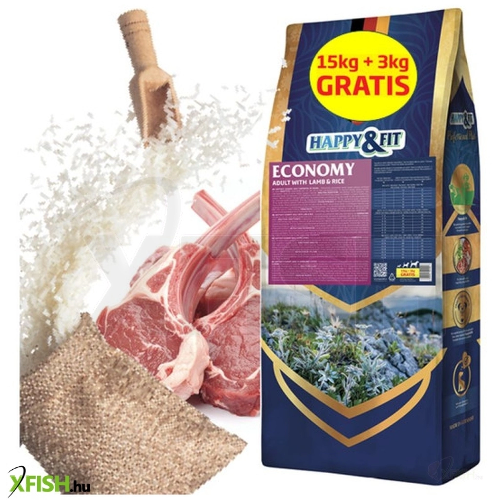 A Happy Fit Economy Adult Báránnyal és Rizzsel egy teljesértékű száraztáp felnőtt kutyák számára, amely ideális választás mindennapi etetésre.