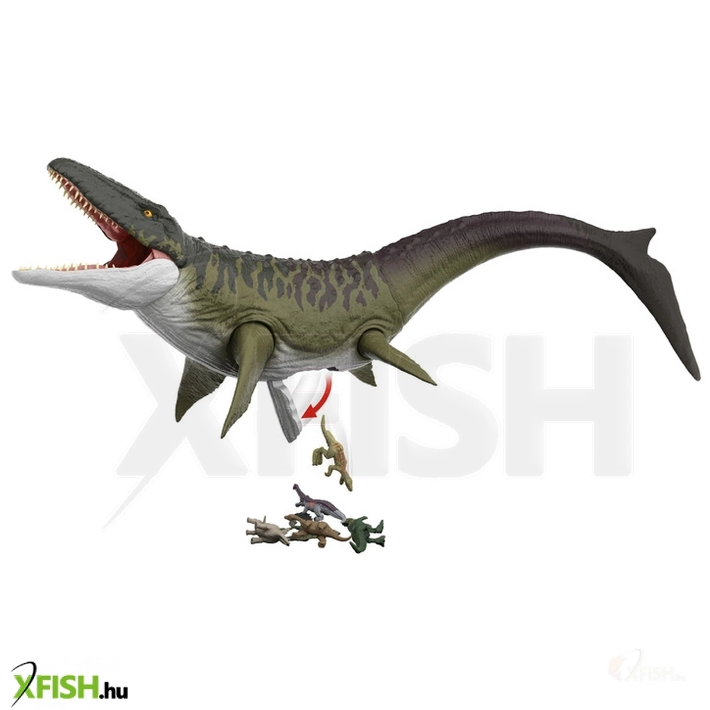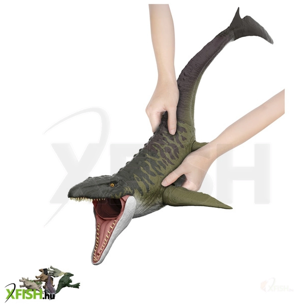 A Jurassic World saga szuper kolosszális Mosasaurus hatalmas, közel egy méter hosszú figura, amely élethű részleteivel és impozáns méretével lenyűgözi a gyerekeket és a gyűjtőket egyaránt. A mozgatható állkapocs lehetővé teszi, hogy a Mosasaurus „bekapja” a kisebb dinoszaurusz figurákat, amelyek a hasán lévő nyitható részen keresztül könnyedén kivehetők. Ez a funkció még izgalmasabbá teszi a játékot, hiszen a gyerekek újra és újra eljátszhatják a Jurassic World ikonikus jeleneteit. Strapabíró kialakítása hosszú ideig tartós szórakozást nyújt minden dinoszaurusz-rajongónak.