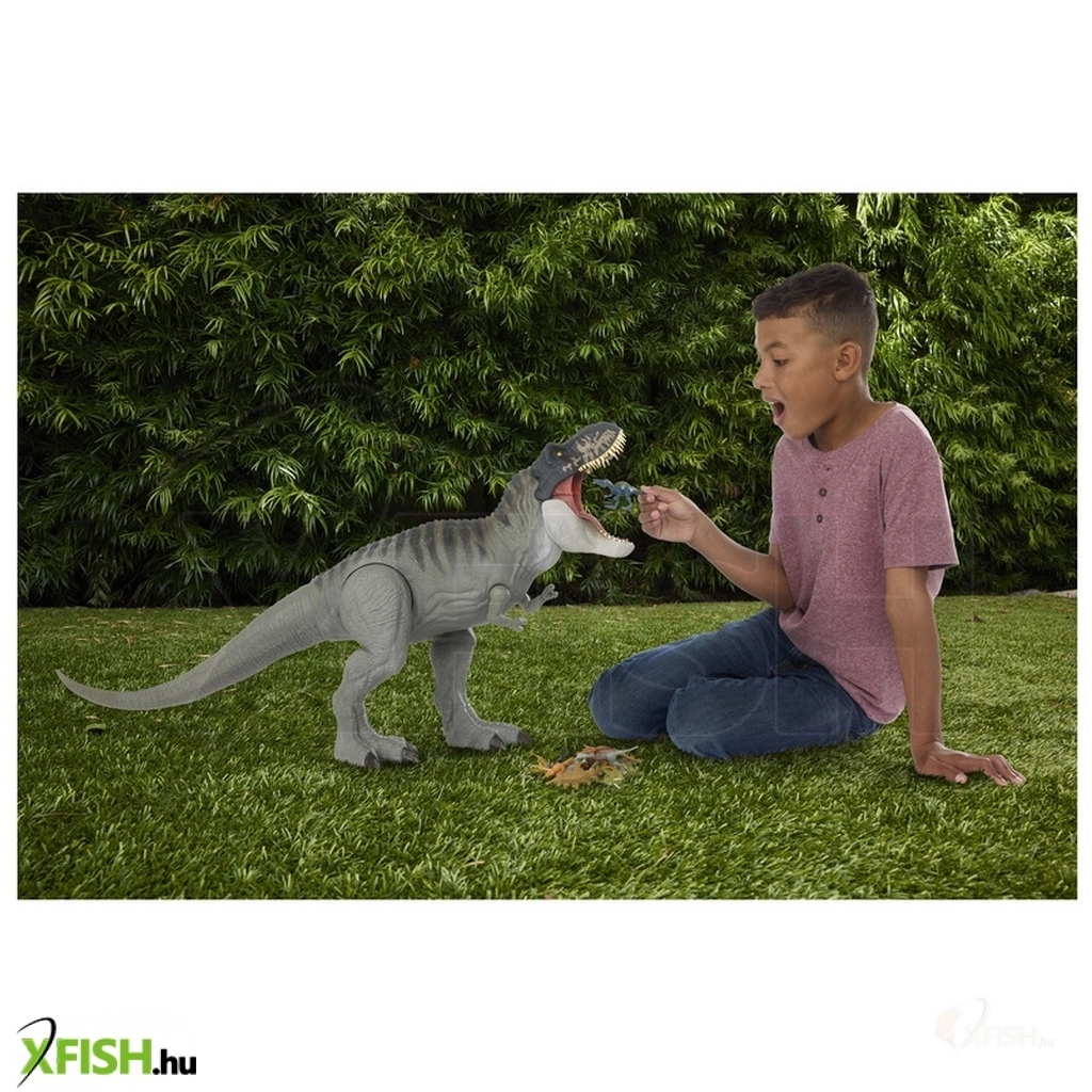 Jurassic World saga szuprer kolosszális T-Rex Tapasztald meg a Jurassic World izgalmát otthon ezzel a monumentális T-Rex figurával! A Mattel által készített Super Colossal Tyrannosaurus Rex egy hatalmas, valósághű kinézetű játékfigura, amely a dinoszauruszok világának legfélelmetesebb ragadozóját hozza el közvetlenül a gyerekszobába. A figura közel egy méter hosszúságával lenyűgöző látványt nyújt, a Jurassic World filmek hangulatát idézi, élénk részletekkel és mozgatható ízületekkel. A lenyitható állkapocsnak köszönhetően a kisebb dinófigurákat lenyelheti, majd a hasán található ajtó kinyitásával visszaengedheti őket. Ez az interaktív funkció különösen izgalmassá teszi a játékot.