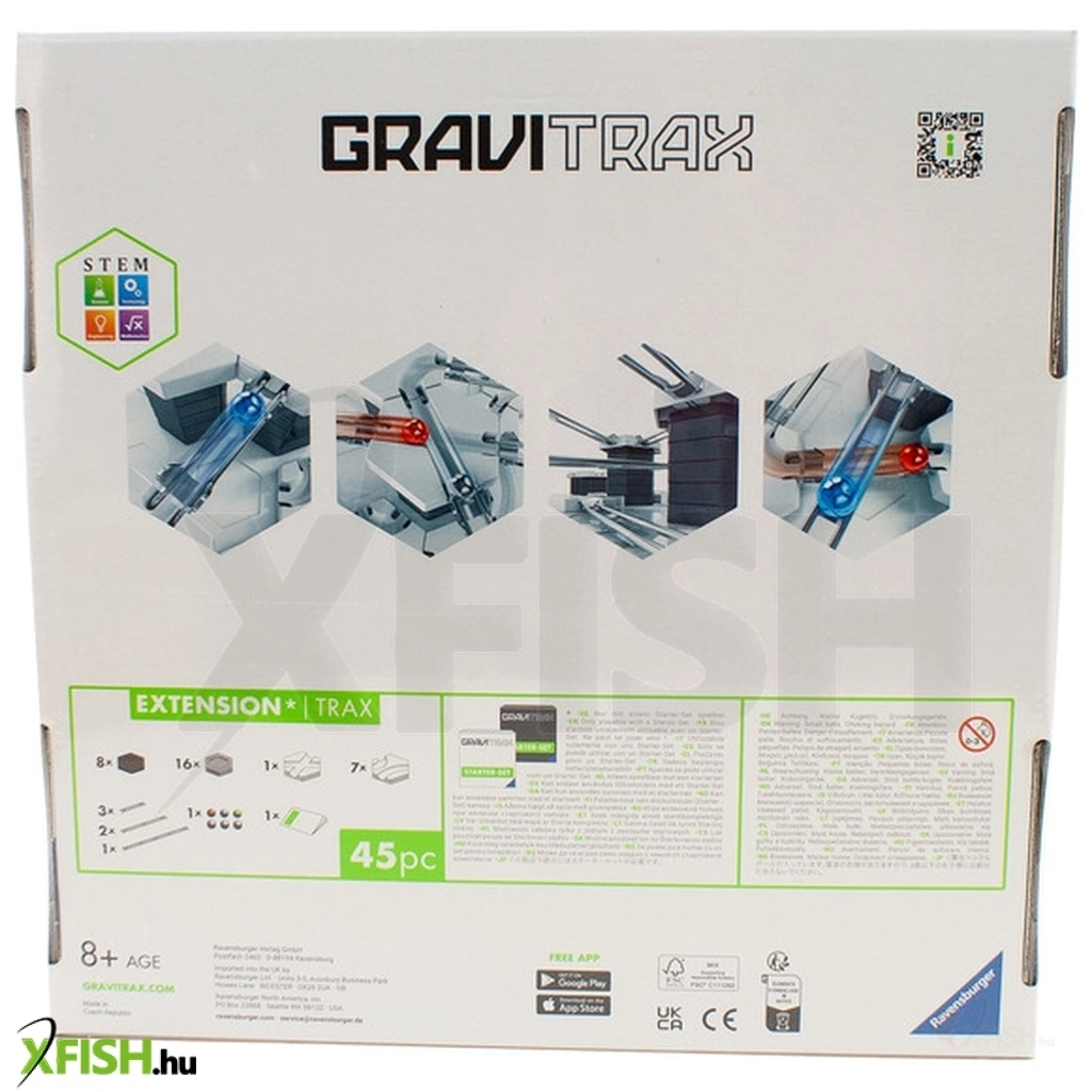 A Ravensburger GraviTrax Trax kiegészítő készlet extra pályaelemeket ad a GraviTrax golyópálya rendszerhez, lehetővé téve még izgalmasabb, hosszabb és kreatívabb pályák építését; a csomag különféle íveket, síneket és csatlakozókat tartalmaz, amelyekkel a golyópálya útvonalát bővítheted, új irányokat, magasabb lejtőket és érdekes fordulatokat alkothatsz, miközben a golyók tovább gördülnek a pályán. A kiegészítők kompatibilisek a többi GraviTrax elemmel, segítik a logikai gondolkodás, problémamegoldó készségek és kreatív tervezés fejlesztését, és remek bővítést jelentenek mind kezdők, mind haladó építők számára.