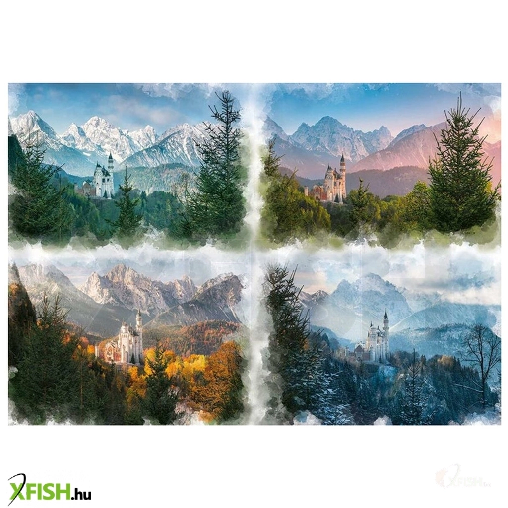 A Ravensburger kiváló minőségű termékei mögött több évtizedes puzzle-gyártási tapasztalat áll, mely garantálja a felejthetetlen puzzle-élményt. A minőség iránti szenvedély, a részletekre való odafigyelés és a motívumok hatalmas választéka teszi a Ravensburger kirakókat olyan egyedivé. Kínálatában kezdőktől a profikig mindenki megtalálja a számára tökéletes puzzle-t! A Neuschwanstein kastély - Négy évszak című képen láthatjuk, hogy a világhírű német kastély látványa miként változik a különböző évszakok színeiben. A 200 méter magas sziklagerincen álló középkori lovagvárhoz ma évente több, mint egymillió turista látogat. Kirakott kép mérete : 276 cm x 192 cm.