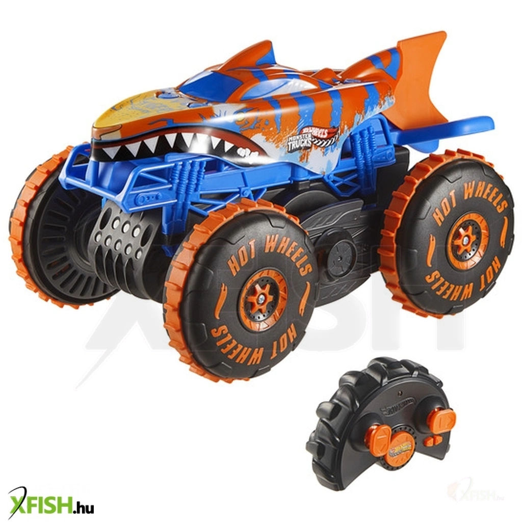 Hot wheels Monster trucks távirányítós mega tiger shark A Hot Wheels Monster Trucks távirányítós Mega Tiger Shark igazi szörnyeteg az autók között. A látványos, cápa ihlette dizájn és a masszív kerekek garantálják az izgalmas terepakciókat. A távirányítóval könnyedén irányítható, így a gyerekek különböző trükköket, ütközéseket és menő mozdulatokat is kipróbálhatnak vele. Strapabíró kialakítása miatt hosszú időn át bírja a megterhelést, akár beltéren, akár kültéren használják. Tökéletes ajándék minden Hot Wheels és Monster Trucks rajongónak, akik szeretik a látványos, akciódús játékokat.