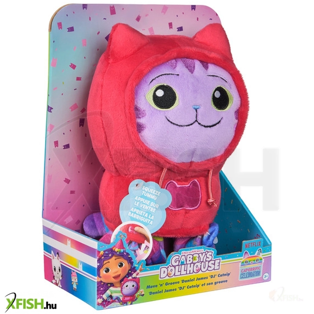 Ez a puha anyagból készült DJ Cicafa plüssfigura tökéletes társ a gyerekek számára, hiszen alig várja, hogy együtt mókázzon velük! A figura különlegessége, hogy ha a particica hasát megnyomják, keze fel-le mozog, mintha csak a zenére táncolna, így igazi szórakozást nyújt a kicsiknek.