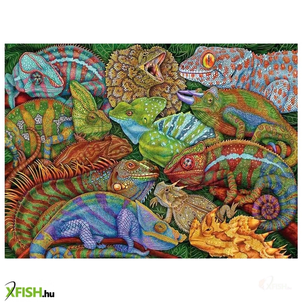 A Ravensburger 300 db-os puzzle – Lenyűgöző hüllők egy látványos kirakójáték, amely színes és részletgazdag grafikával mutatja be a hüllők sokszínű világát; a precízen illeszkedő darabokból álló kirakó ideális választás fiatalabb puzzlezőknek és kezdőknek, miközben fejleszti a figyelmet, türelmet és térlátást, valamint remek vizuális élményt nyújt, amikor az összkép – a kígyók, gyíkok, kaméleonok és más hüllők látványa – kirajzolódik a kirakás során.