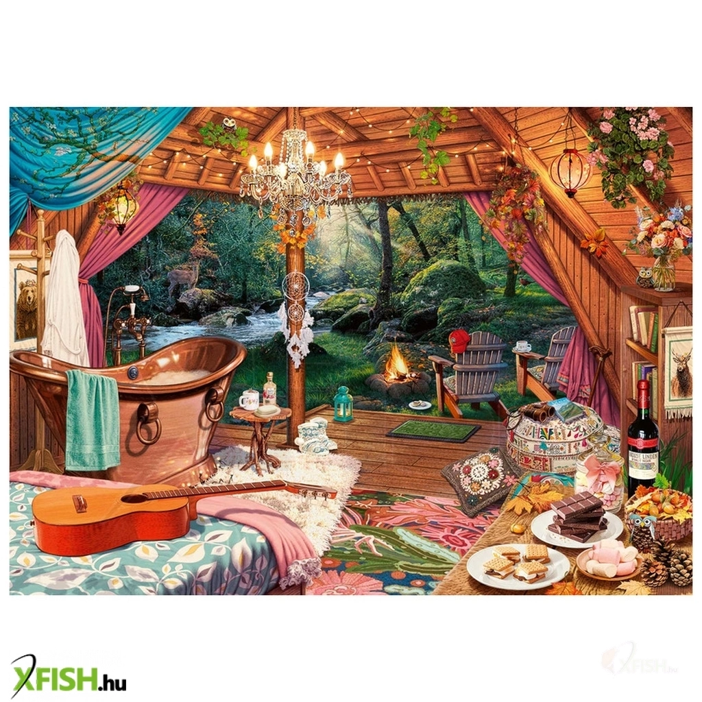 A Ravensburger 500 db-os puzzle – Glamping egy hangulatos kirakójáték, amely egy stílusos glamping (luxus kemping) jelenetet ábrázol barátságos színekkel és részletgazdag grafikával; a minőségi, precízen illeszkedő darabok segítségével a kirakás fejleszti a figyelmet, türelmet, térlátást és logikai készséget, miközben a képen megjelenő cozy sátrak, természetközeli környezet és hangulatos kempingelemek életre kelnek. — ideális választás közös családi programnak vagy egyéni kreatív kikapcsolódáshoz, különösen azoknak, akik szeretik a természet és a pihentető kemping hangulatát kirakójáték formájában élvezni.