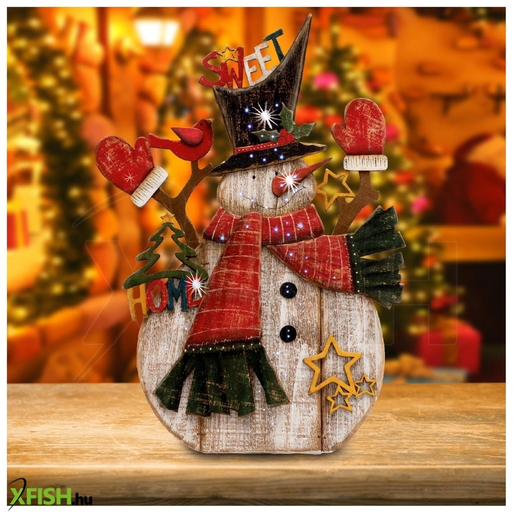 Egy igazán egyedi és vidám díszt keres az ünnepi asztalra- A KAD 34 optikai szálas asztali dísz tökéletes választás minden otthonba! A dísz egy kedves hóember figurát ábrázol, amely egy festett fa dekoráció és színes, villogó fénypontok díszítik, amelyek garantáltan feldobják a karácsonyi hangulatot.