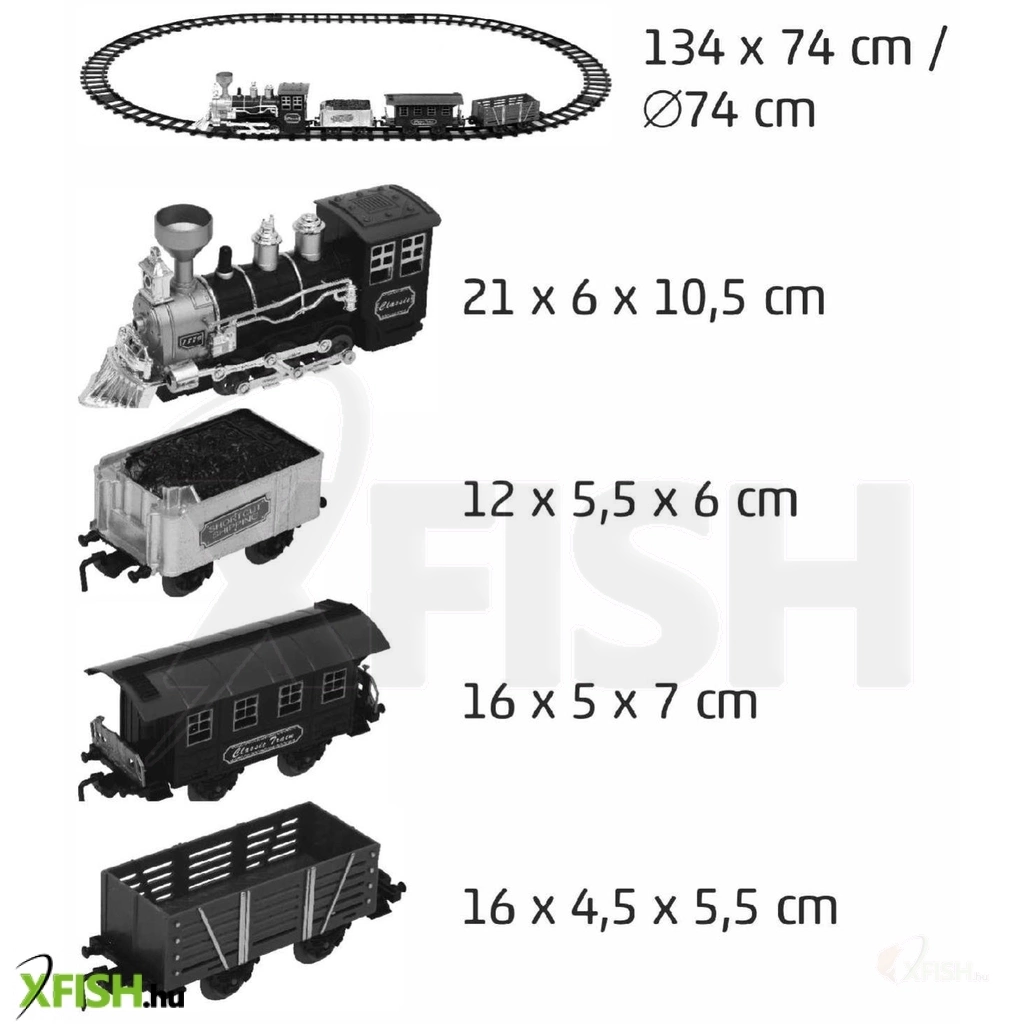 KategóriákKategóriákGyermekjátékok Gyerek és Otthon Home trn 01 elemes kisvasút, 1 mozdony és 3 vagon, vízgőzt képez, piros LED világítás, hanghatás, 47 cm-es pálya