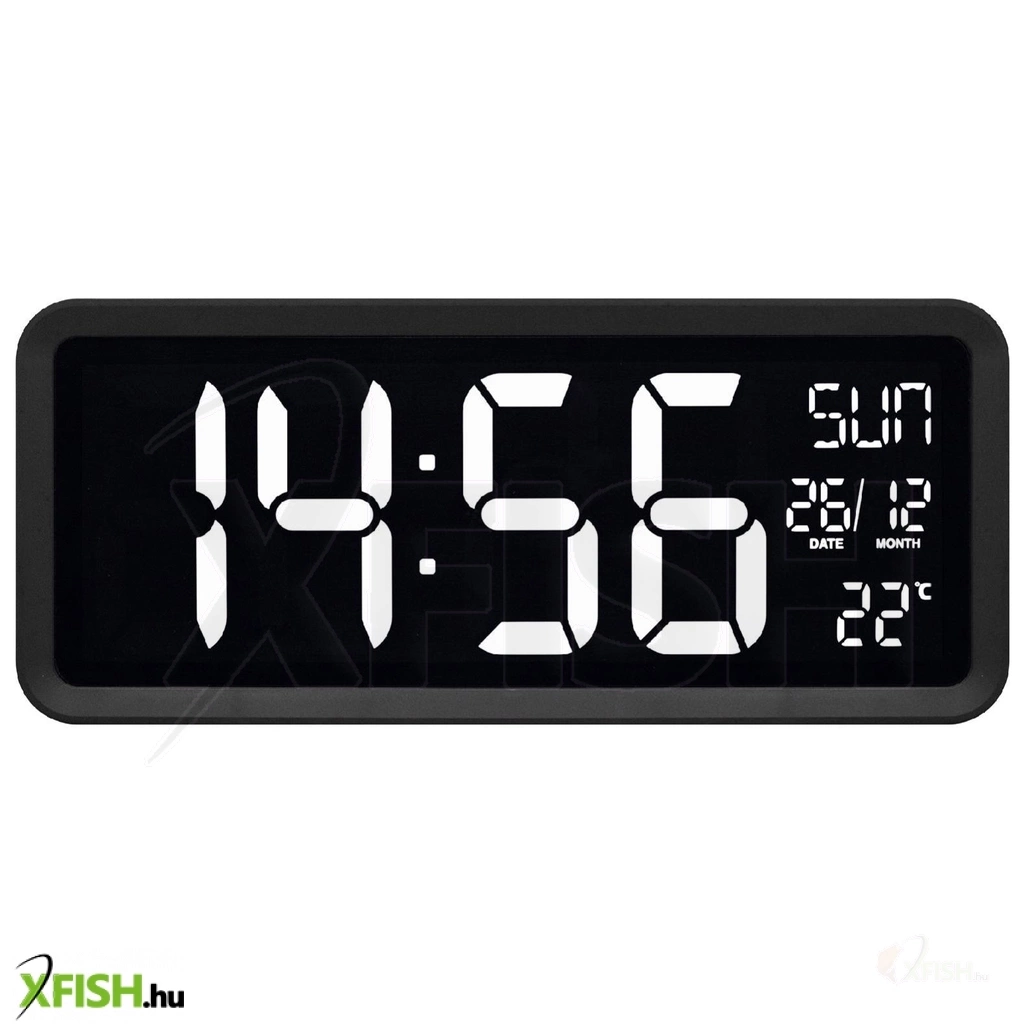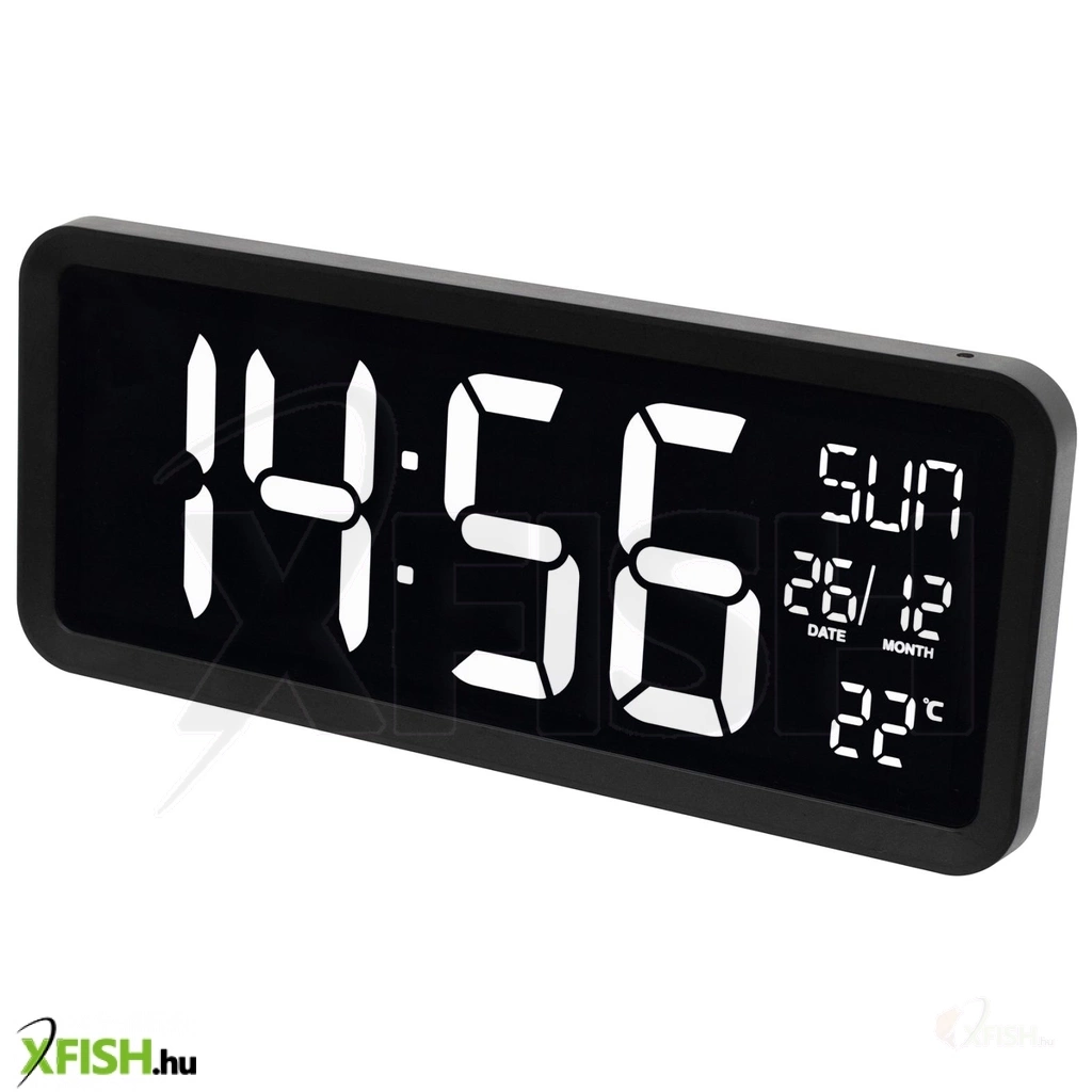 Nagyméretű fehér számok (105 mm) és a távolról is könnyen olvasható kijelző biztosítja, hogy akár a szoba másik végéből is azonnal leolvasható legyen az aktuális idő, dátum vagy hőmérséklet. Az óra egyszerre mutatja az időt, hónapot, napot, a hét napját és a hőmérsékletet, így átlátható és hasznos információkat nyújt.