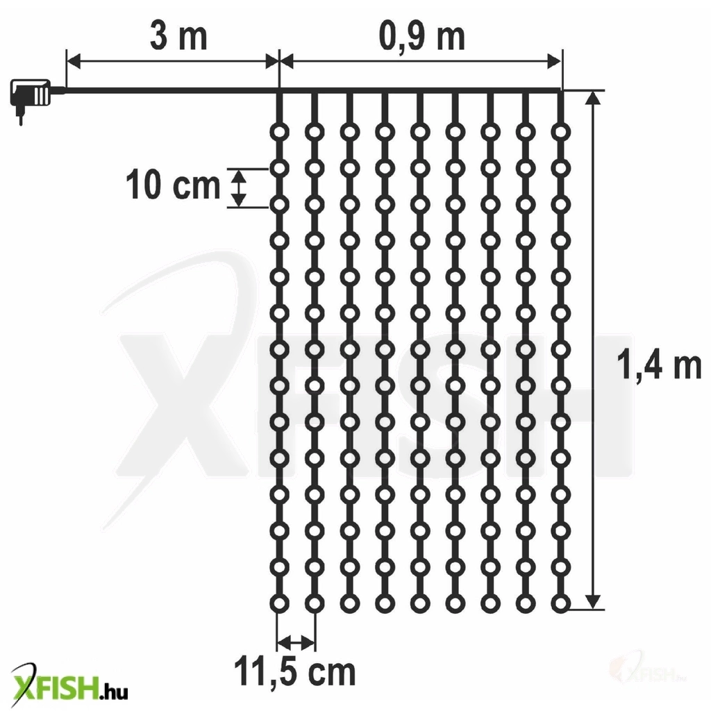 A fényfüggöny kialakítása igazán dekoratív: 9 külön füzérből áll, amelyek mindegyikén 14 DOT LED világít. Az egyenletes eloszlásnak köszönhetően a fényfüggöny nemcsak ablakra, hanem falra, ajtónyílásba vagy akár egy háttérként is könnyedén elhelyezhető. A hidegfehér fény elegáns, modern megjelenést kölcsönöz, amely illik a karácsonyi ünnepi hangulathoz, de bármilyen beltéri esemény díszítéséhez is ideális.