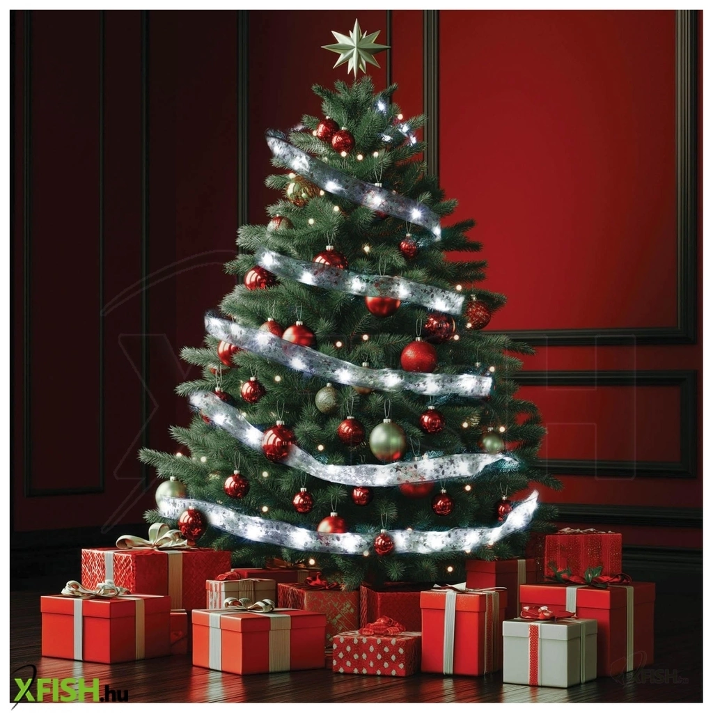 A hidegfehér fény és a szalag ezüst tónusa elegáns megjelenést kölcsönöz, amely kiválóan illik modern és klasszikus enteriőrbe egyaránt. A szalag kialakítása nem csupán dekoratív, de könnyen formázható is, így kreatívan használható az ünnepi díszítés során.