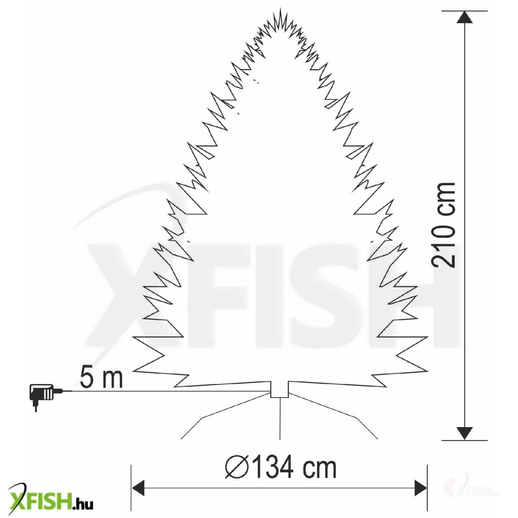 A 210 cm-es magasság és a 134 cm-es átmérő tekintélyes, mégis harmonikus megjelenést biztosít nagyobb helyiségekben is. A műfenyő erős fém talpa stabil tartást ad, még akkor is, ha bőséges mennyiségű dísz kerül az ágakra. A beltéri kivitel biztonságos és hosszú távú használatra lett tervezve, miközben a könnyen formázható ágak gyors és egyszerű összeállítást tesznek lehetővé.