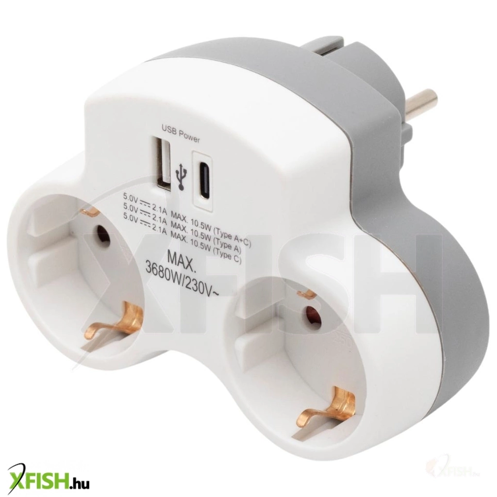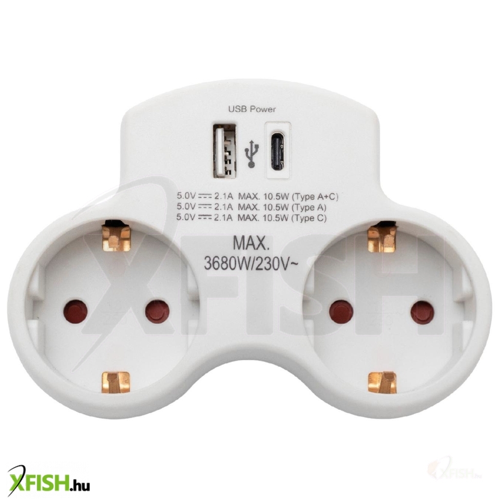 Home tpf2usbc usbc hálózati töltő, 2.1a, max. 3680 w, 2 db földelt hálózati aljzat gyermekvédő zsaluval