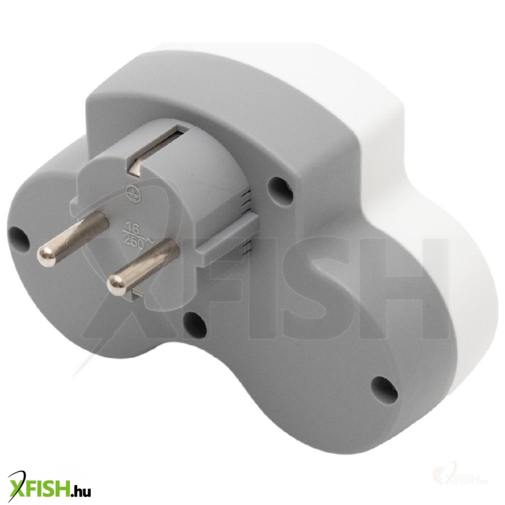 A készülék két darab, földeléssel ellátott hálózati csatlakozóval rendelkezik, amelyek megfelelnek a modern elektromos készülékek igényeinek. A beépített gyermekvédő zsalu extra biztonságot nyújt, különösen kisgyermekes háztartásokban. A töltő 250 V~ 50/60 Hz, 16 A értékek mellett akár 3680 W maximális teljesítmény kezelésére is képes, így nagyobb energiaigényű eszközök csatlakoztatása sem jelent problémát.