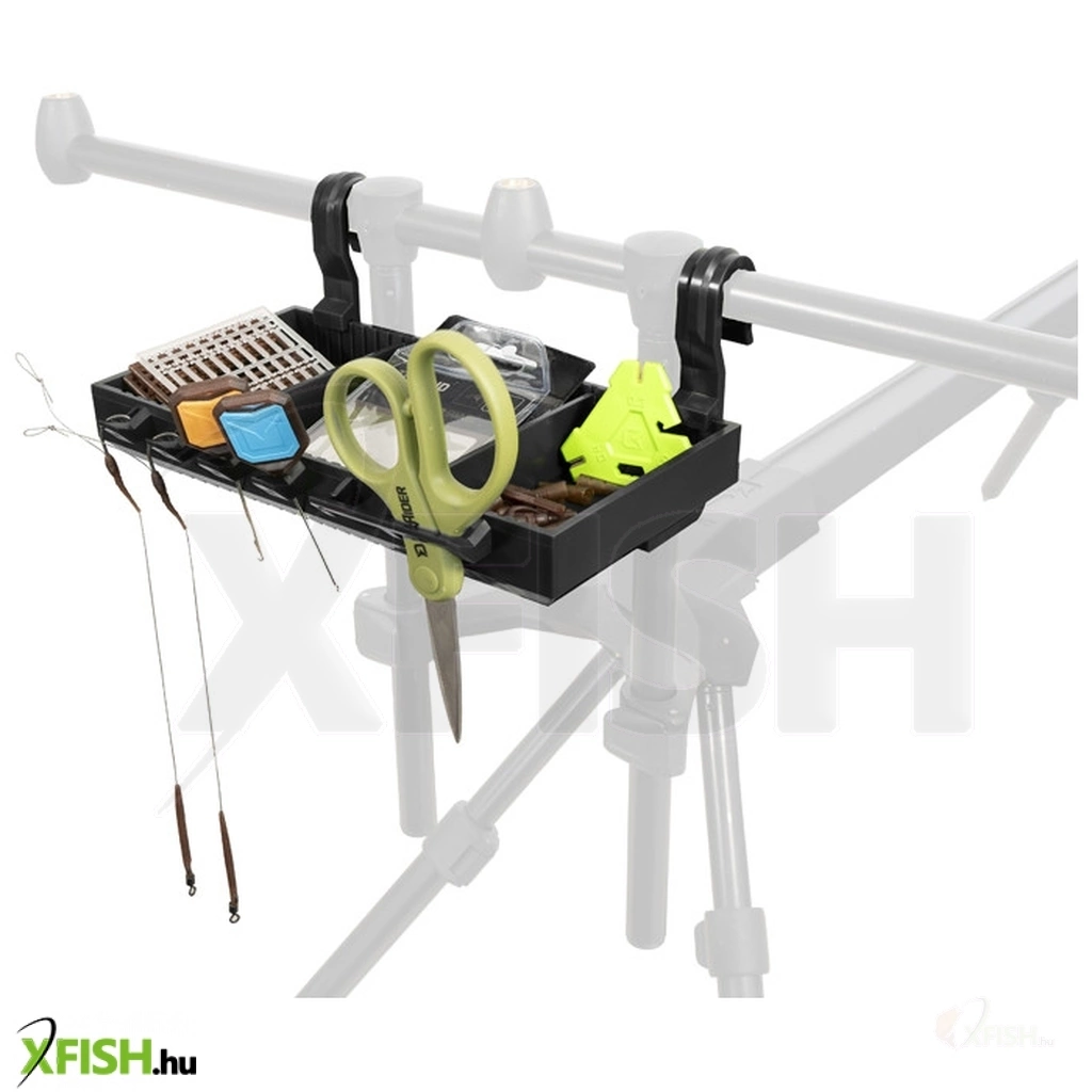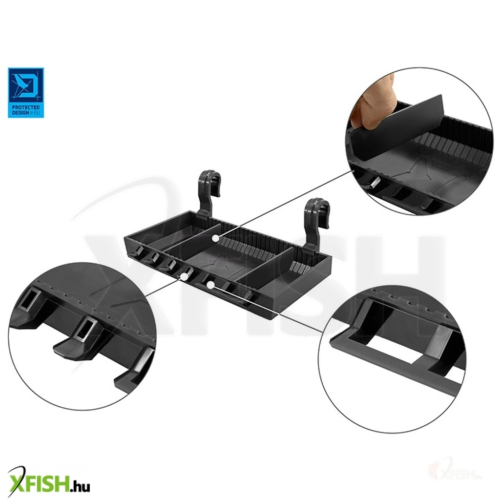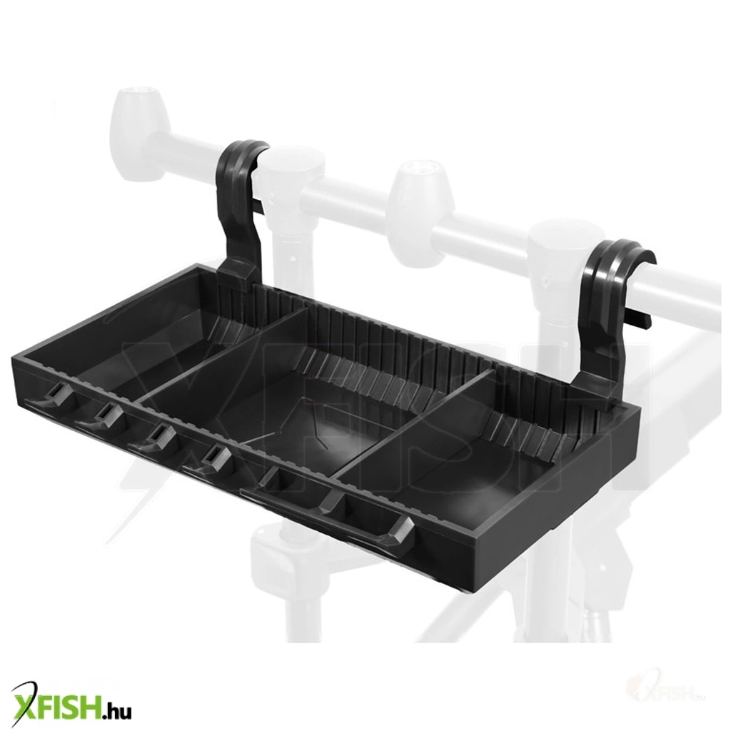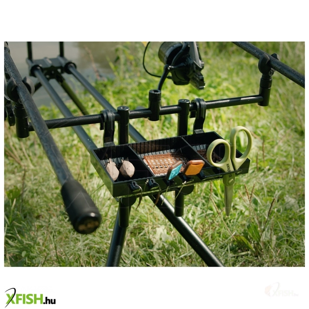 Apró kiegészítők vagy csalik tárolására alkalmas polc. Ez azt jelenti, hogy ezek a kis szerelékelemek mindig a közelében lesznek, közvetlenül a bedobott botok mellett.
