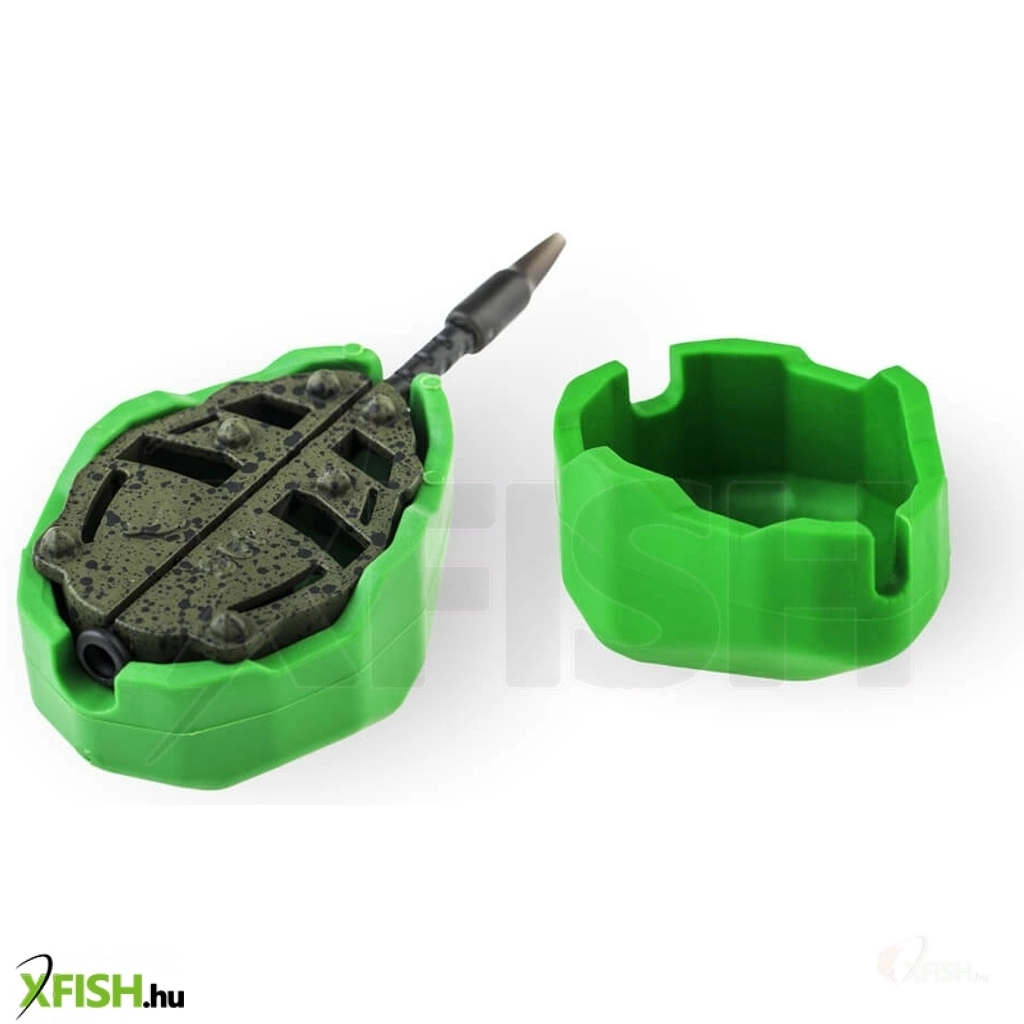 A Zfish Feeder Spider Medium Set Method Kosár Szett a method feeder kosarak új generációját képviselő komplett készlet, amely a precíz kivitelezést, innovatív formatervezést és maximális funkcionalitást ötvözi. Tapasztalt ZFISH szakemberek közreműködésével készült, hogy a modern horgászok legmagasabb elvárásainak is megfeleljen. Az egyedi Spider forma tökéletes egyensúlyt biztosít dobás közben, és garantálja, hogy a kosár mindig megfelelő pozícióban érjen feneket, míg az új fejlesztésű tartókeret optimális etetőanyag-kioldást biztosít és védi a horogcsalit dobáskor. A speciális platform pontos csali elhelyezést tesz lehetővé, így a csali mindig ideális pozícióban marad. A cserélhető csöves rendszer és a hátsó nyílás segítségével a súly gyorsan cserélhető újrakötés nélkül, ami jelentősen megkönnyíti a horgászatot. A kosarak ólommentes anyagból készülnek, gumírozott matt zöld felülettel és fekete pöttyökkel, így tökéletesen beleolvadnak a meder környezetébe és nem keltik fel a halak gyanúját. A szett része a Spider Mould töltőforma is, amely rugalmas, prémium minőségű szilikonból készült, ergonomikus kialakításának köszönhetően gyors és egyenletes töltést biztosít, valamint lehetővé teszi a megtöltött kosár könnyű kiemelését. A készlet kompatibilis minden ZFISH Spider method feeder kosárral, súlya 40 és 50 grammos kosarakat tartalmaz, így ideális választás azoknak, akik precíz, gyors és professzionális etetést szeretnének elérni minden horgászhelyzetben.