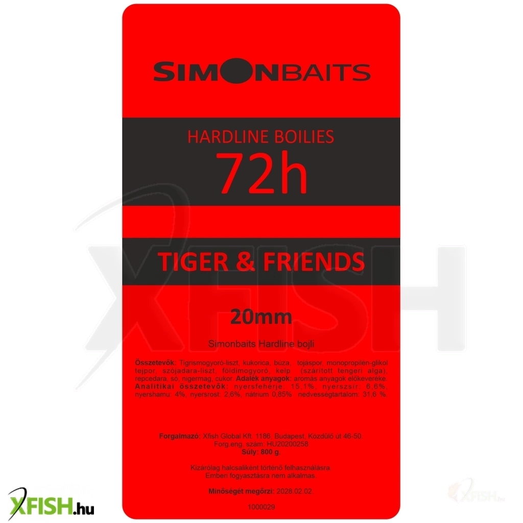 KategóriákKategóriákBojli csali etetőanyag Bojli Simon Baits Hardline Bojli 72H Tiger & Friends-Tigrismogyoró, Mogyoró, Tejszín 20 mm 800 g
