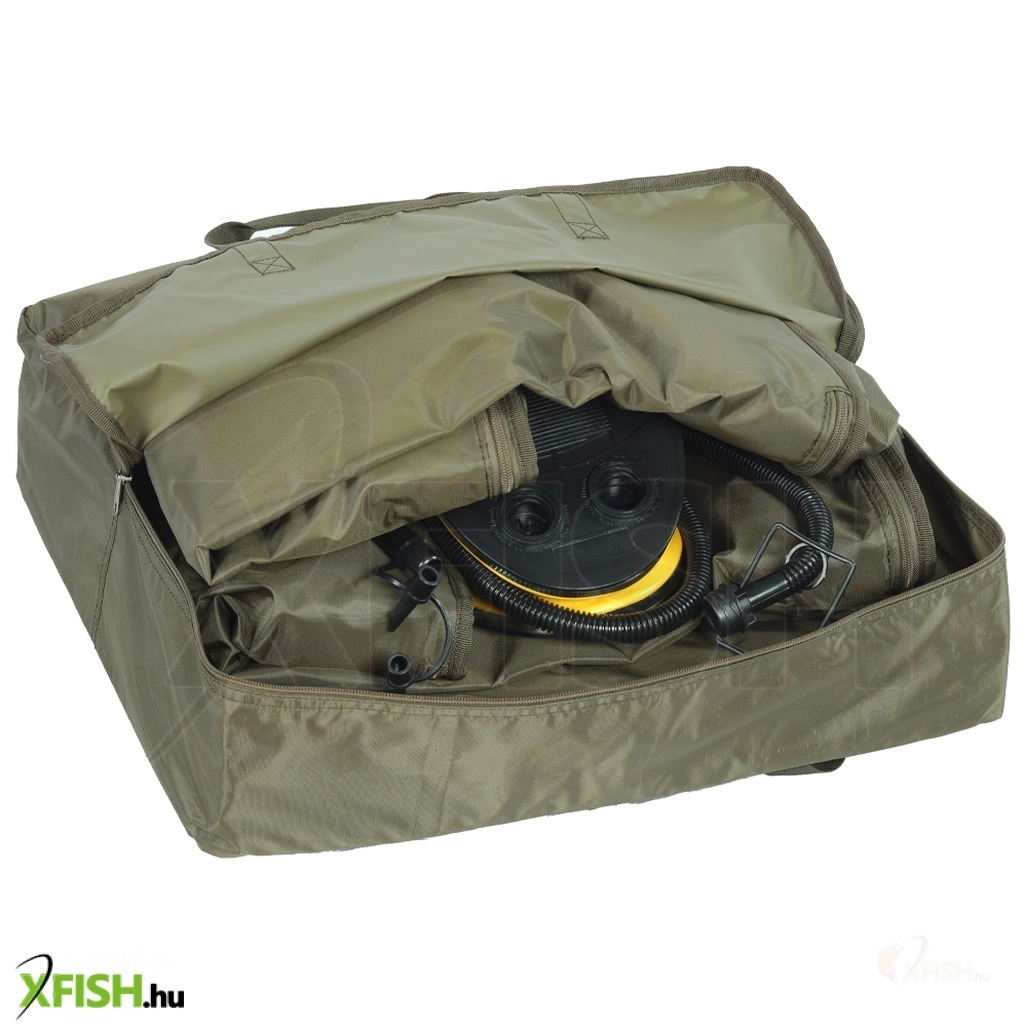Giants Fishing Air Cradle Felfújható Pontybölcső egy prémium kategóriás, hordozható pontybölcső, amelyet kimondottan a halak biztonságos és kíméletes kezelésére terveztek. Felfújható, puha oldalfalai maximális védelmet nyújtanak a pontyoknak még hosszabb ideig tartó vízben tartás vagy mérlegelés során is, miközben megakadályozzák a halak sérülését, súrlódását vagy stresszelését. A vízáteresztő alj és a gyorsan leengedhető konstrukció egyszerű használatot biztosít a vízpartra érkezéstől az elengedésig.