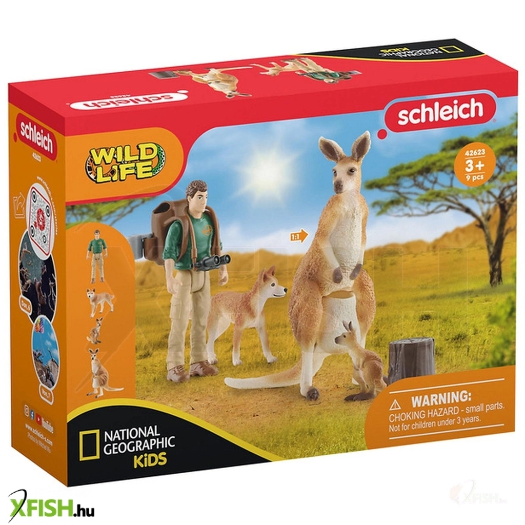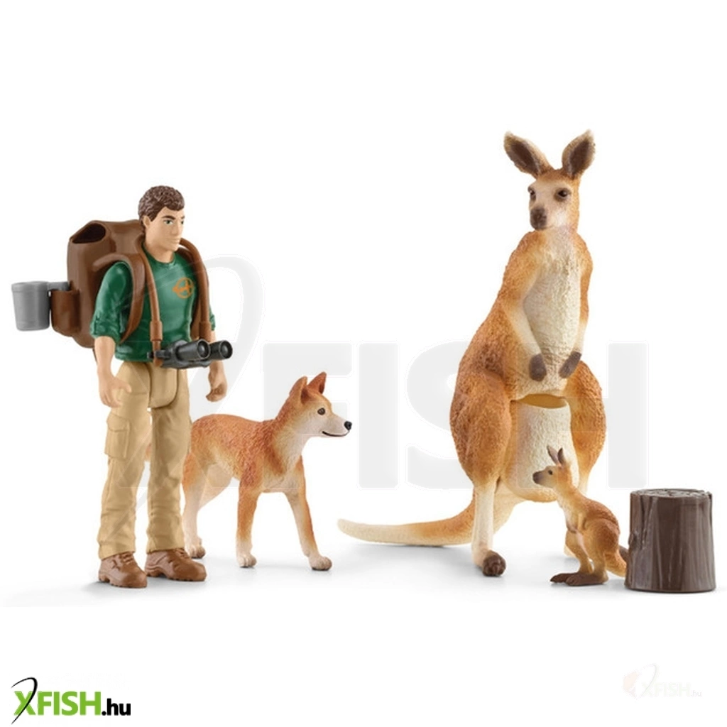 A Schleich Wild Life sorozattal egy hátizsákos kalandra indulhatnak a gyerekek. A vadon csupa izgalmas állatot rejt - például egy kenguru anyukát és erszényében rejlő kicsinyét. A túrához elengedhetetlen a kényelmes öltözék, hátizsák, bögre, távcső és egy hűséges társ. Az állatok méretaránya pontosan megfelel a valóságnak. A Schleich figurák kiváló, kézzel festetett egyedi és megismételhetetlen darabok. A készítők rengeteg figyelmet szenteltek annak, hogy a figurák pontosan, élethűen adják vissza az adott élőlény egyes vonásait. Csomagolás mérete: 18.5 cm x 14.5 cm x 6 cm Tartalom: 1 db Ranger Tom kalandor, 1 db kenguru mama, 1 db kenguru baba, 1 db kutya, 1 db hátizsák, 1 db távcső, 1 db bögre, 1 db fatörzs.