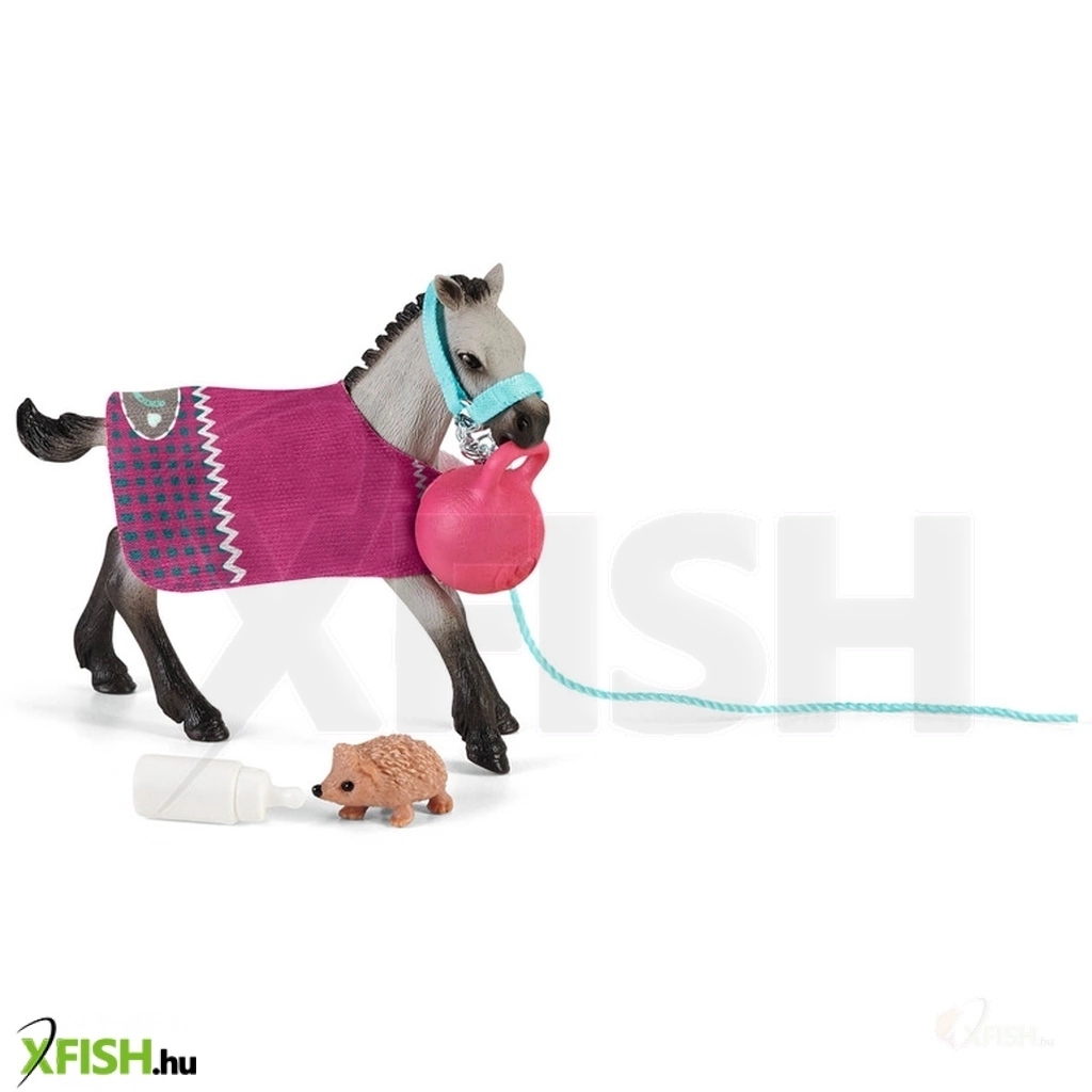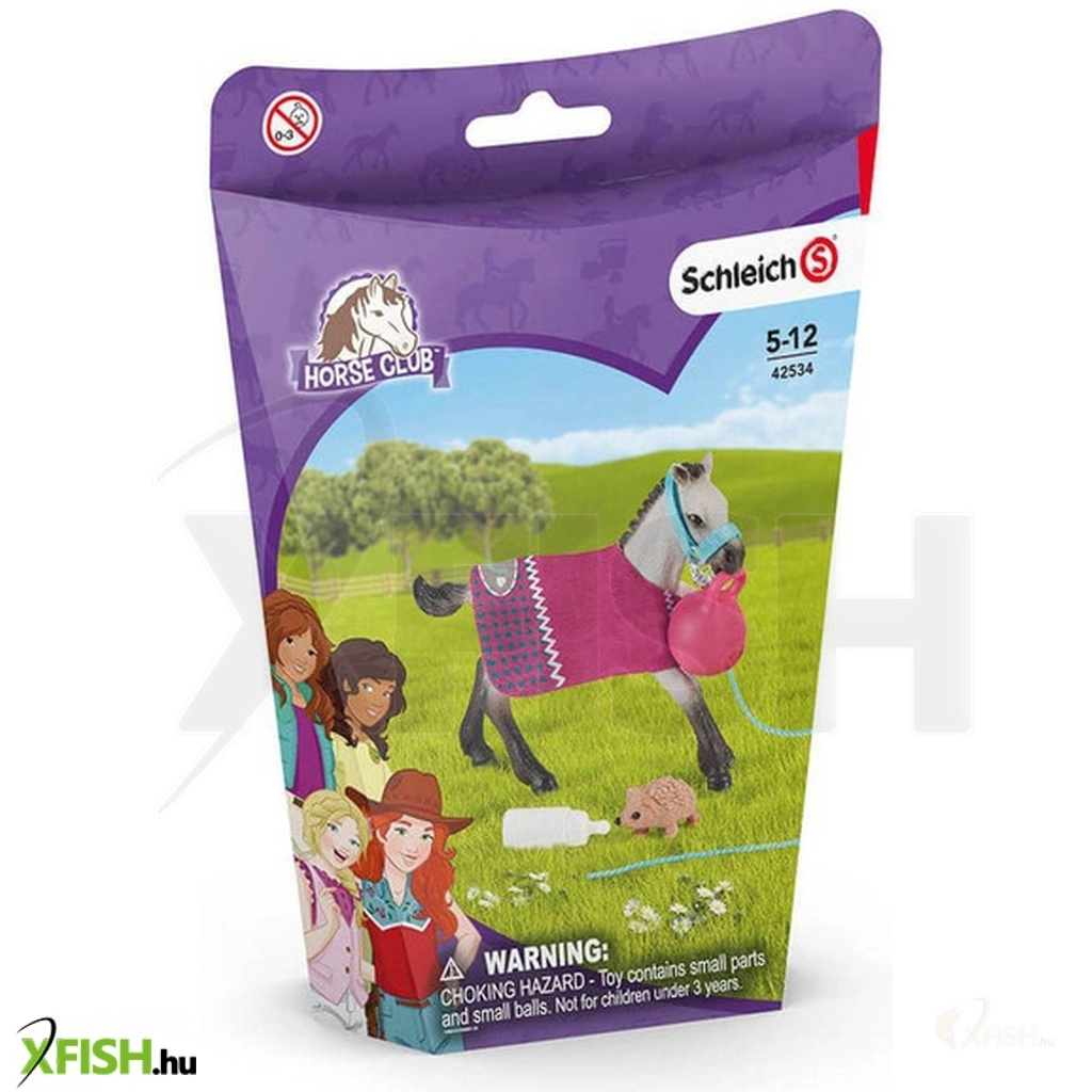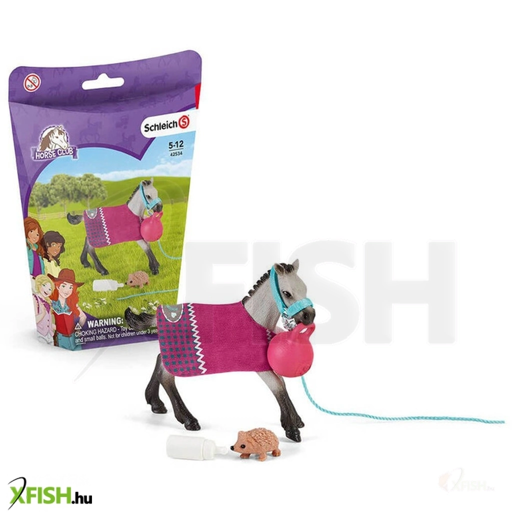 A Schleich(R) Horse Club Játékos Csikó készlet egy kifejezetten lovak számára kifejlesztett játéklabdát tartalmaz: a quarter csikó a fogaival bele tud kapaszkodni a fogával. Játék közben a csikó összetéveszti az aranyos kis sünt a labdával, de hamar rájön, hogy milyen tüskés! Szerencsére egyikük sem sérül meg ebben a vicces találkozásban, és a két állat összebarátkozik. A hancúrozás után a csikó iszik a cumisüvegből, és meleg takarót terítenek rá, hogy ne fázzon. Méret: 13,6x5,8x19,2 cm
