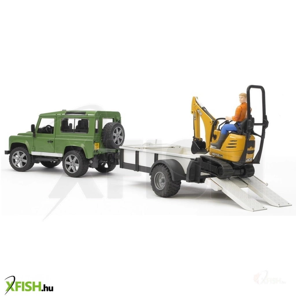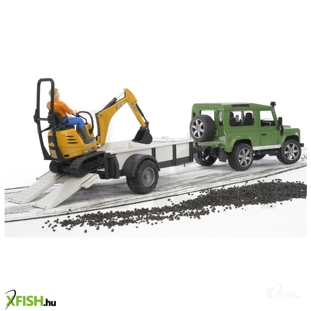 KategóriákKategóriákJátékautó és jármű Játékautó 20 cm felett Bruder land rover defender egytengelyes pótkocsi, jcb mikro kotrógép és munkás