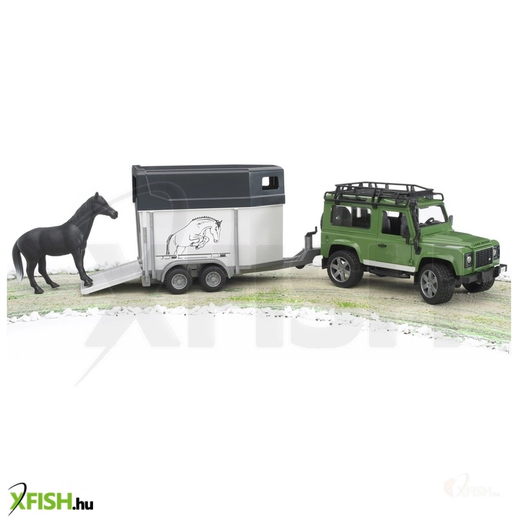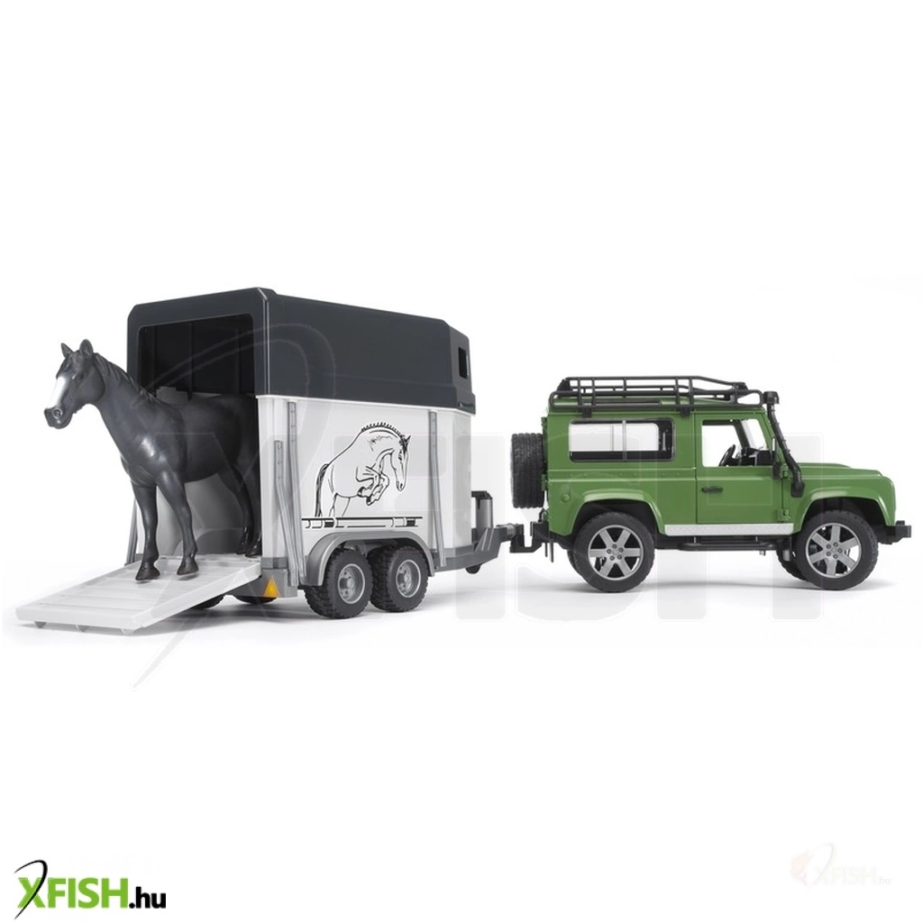 A Bruder Land Rover Defender kombi jármű és lószállító pótkocsi egy lóval izgalmas, részletgazdag farmos- és kalandos játékszett, amely rengeteg szerepjáték-lehetőséget kínál. A masszív terepjáró stabilan gurul, könnyen vontatható a lószállító pótkocsit, amelyben az 1 db játék ló is utazhat. A pótkocsi ajtaja nyitható, így a ló be- és kiszállása is valósághűen játszható le.