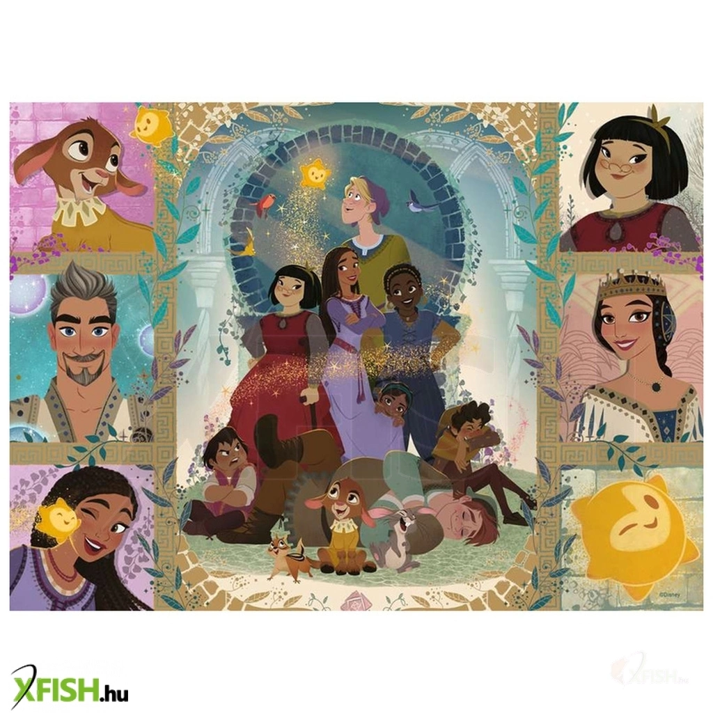 Puzzle 100 db - Disney Wish A több, mint 120 éves gyártói tapasztalat és a fokozott figyelem, amit a részletekre fordítanak, garantálja a minőséget. Puzzle képeik, az általuk kizárólagosan kifejlesztett, extra vastag, vászon strukturált kartonpapírból készülnek. A vágószerszámok gondos tervezése és kézzel történő kialakítása garantálja a tökéletes illeszkedést és azt, hogy nincs két egyforma puzzle darab. A puzzle kirakó klasszikus ügyességi és logikai fejlesztő játék. Fejleszti a kézügyességet, próbára teszi a logikát, a türelmet, a kitartást és összetett látásmódra sarkall. Gyermekeknél kiemelt szerepe van a koncentráció fejlesztésében, de a finommotorikára gyarkorolt jótékony hatása is megkérdőjelezhetetlen. Garantáltan kikapcsolja az egész családot ez a klasszikus beltéri játék, az ezer kis darab összeillesztése akár több estére is lefoglalja az egész családot, minőségi időt töltve együtt.