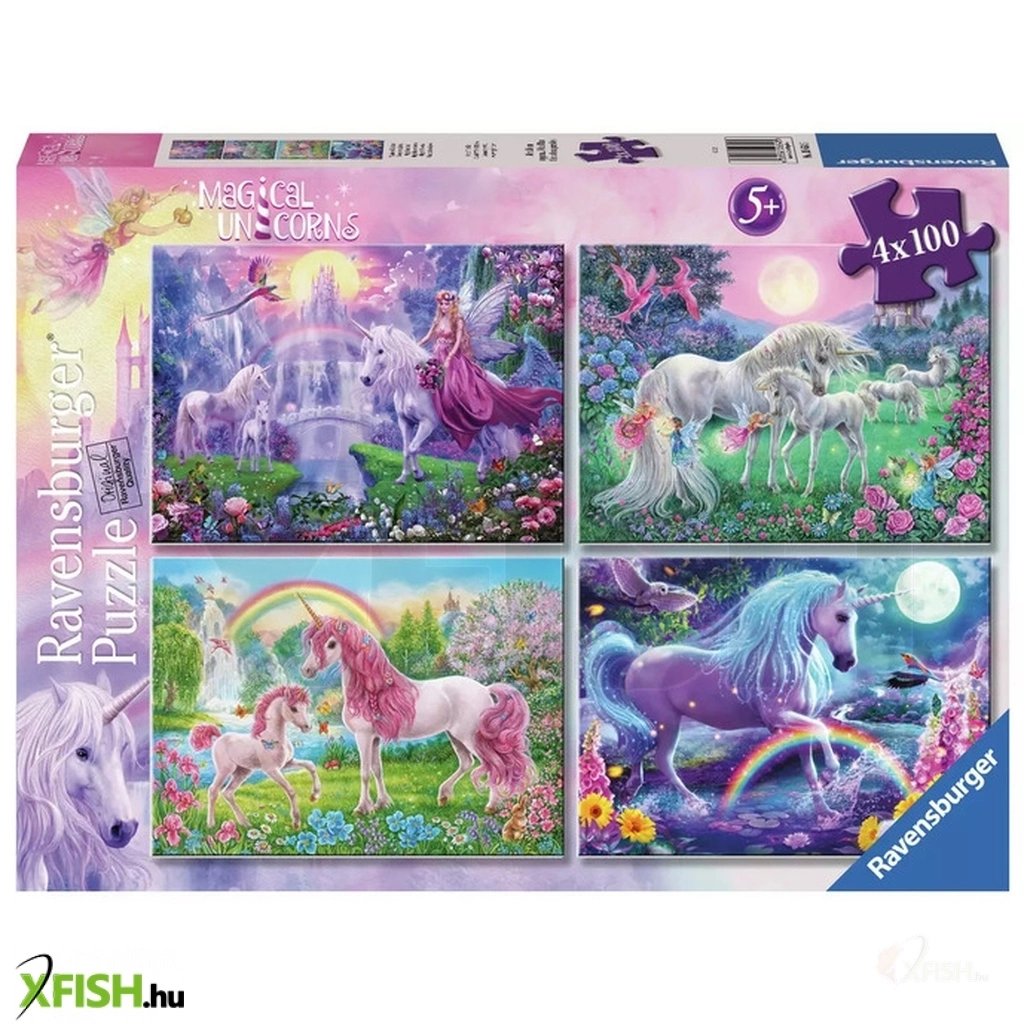 A Ravensburger 4×100 darabos – Unikornisok puzzle készlet négy külön 100 darabos kirakót tartalmaz, mindegyiket varázslatos unikornis témában. A vidám és színes grafikák egyedi jeleneteket mutatnak be a mesés lények világából, így mindegyik puzzle külön kalandot kínál. A kisebb darabszám miatt a kirakók ideálisak kezdő puzzlereknek vagy gyerekeknek, de felnőttek számára is remek, könnyed kirakóélményt biztosítanak. Ez a szett tökéletes választás családi közös játékra vagy ajándéknak, miközben fejleszti a türelmet, koncentrációt és a vizuális emlékezetet minden korosztály számára.