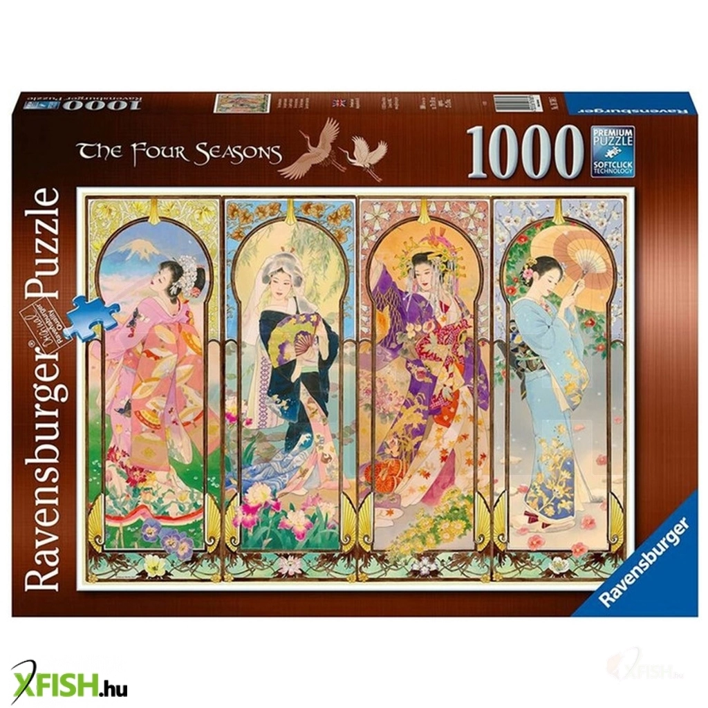A Ravensburger 1000 db-os puzzle - A négy évszak című képén a japán gésák mindegyike más-más évszakot képvisel ruhájával és környezetével is.