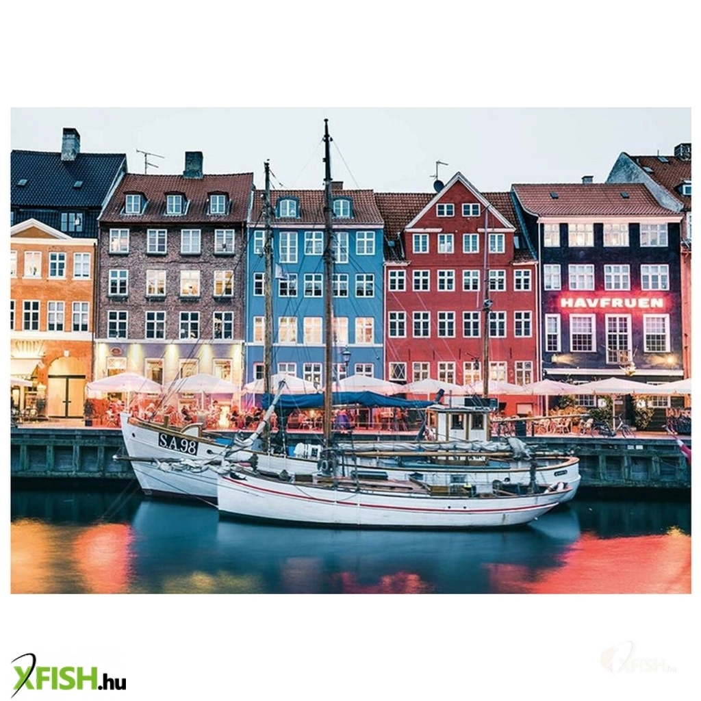 A Ravensburger 1000 db-os puzzle - képen Dánia fővárosa Koppenhága amelynek az egyik kikötőjét láthatunk.