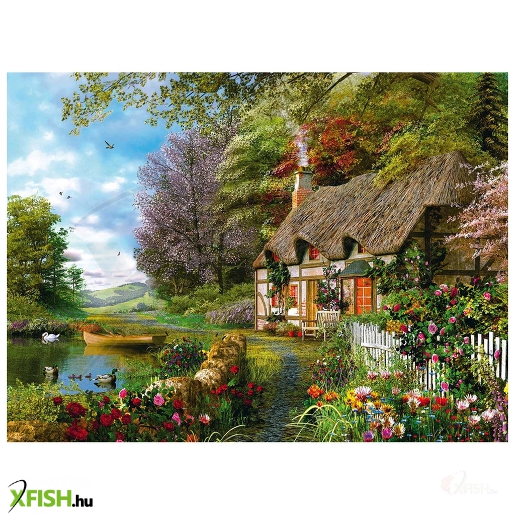 Fedezd fel a vidéki élet varázsát ezzel a gyönyörű, 1500 darabból álló puzzle-lal! A puzzle egy festői vidéki házikót ábrázol, amely körül zöldellő fák és virágos rétek találhatók.