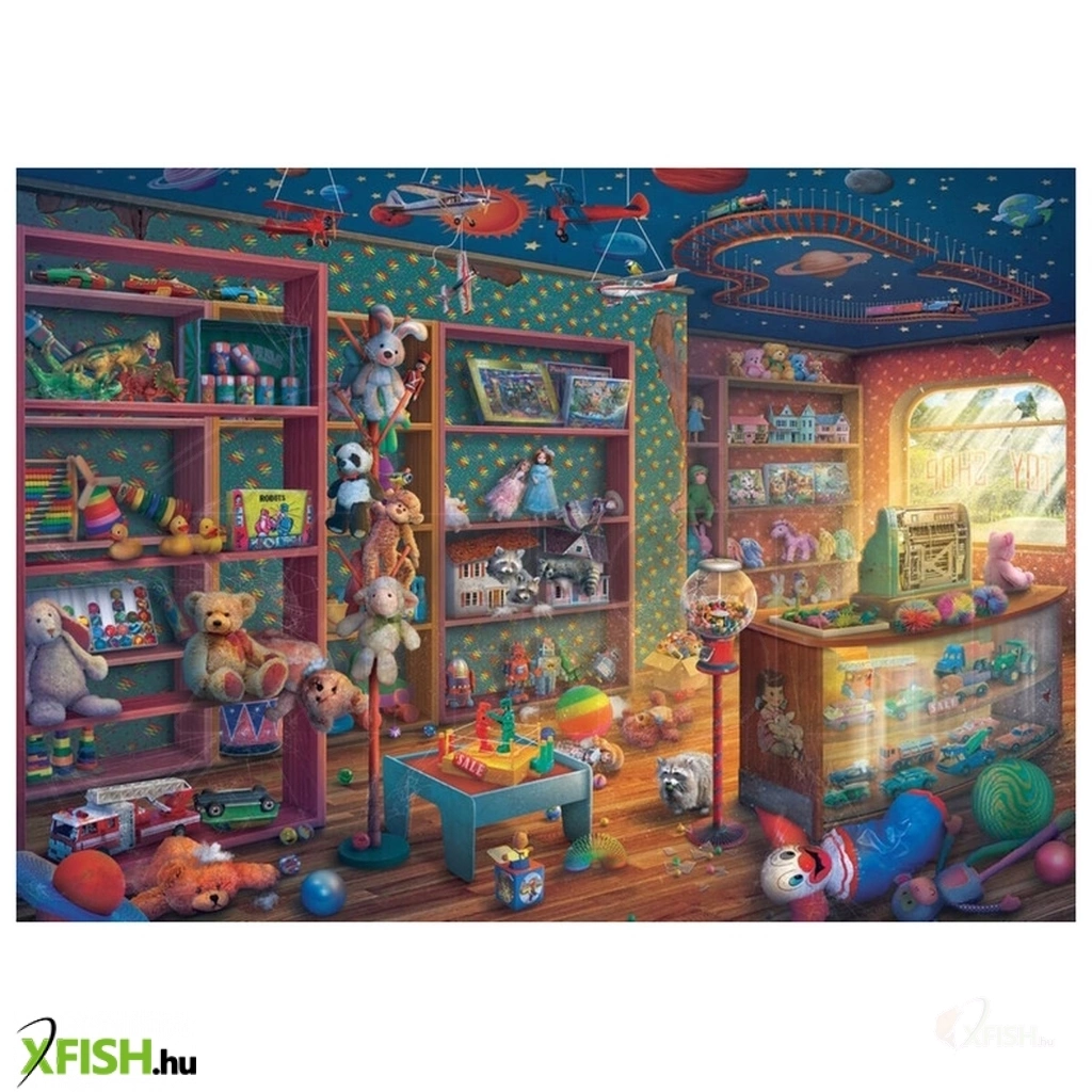 A Ravensburger 1000 db-os puzzle - Tattered Toy Store című képet kirakva Eduard ukrán művész alkotásában egy az 1970-es és 1980-as évek játékait felvonultató kopott és elhagyatott játékboltba nyerhetünk bepillantást.