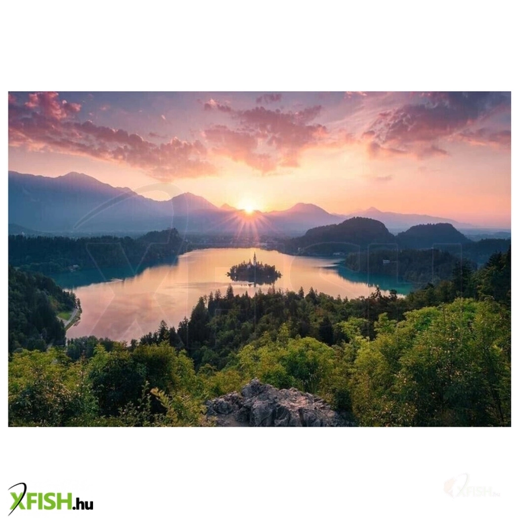 A Ravensburger 3000 db-os puzzle - Bledi-tó, Szlovénia című képen az ország második legnagyobb tava látható, mely festői környezetben, hegyekkel és erdővel van körülvéve.