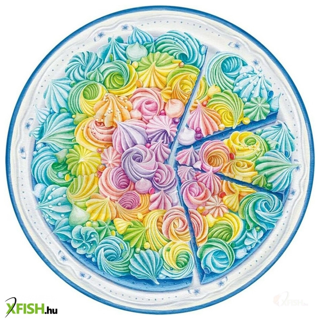 A Ravensburger kiváló minőségű termékei mögött több évtizedes puzzle-gyártási tapasztalat áll, mely garantálja a felejthetetlen puzzle-élményt. A minőség iránti szenvedély, a részletekre való odafigyelés és a motívumok hatalmas választéka teszi a Ravensburger kirakókat olyan egyedivé. Kínálatában kezdőktől a profikig mindenki megtalálja a számára tökéletes puzzle-t! A Circle of Colors kollekció különböző országok művészeinek alkotását sorakoztatja fel. A Rainbow Cake című darabja az ukrán művész, Inna Markova alkotása, akinek kedvenc alkotó módszerei a vízfestés és a digitális művészet. Inna nagyon szeret színpompás desszerteket, állatokat és virágokat rajzolni. Kép átmérője kb. 52 cm.