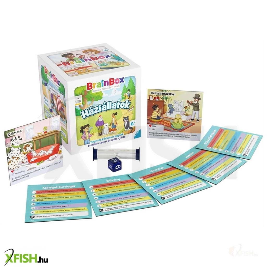 A BrainBox – Háziállatok egy szórakoztató és tanulságos memóriajáték, amely játékos módon ismerteti meg a gyerekeket a házi kedvencekkel és haszonállatokkal. A játék során a résztvevőknek 10 másodperc áll rendelkezésükre, hogy alaposan megfigyeljék a kártyán található képeket és információkat, majd ezt követően kérdésekre válaszolva tesztelhetik emlékezetüket és figyelmüket.