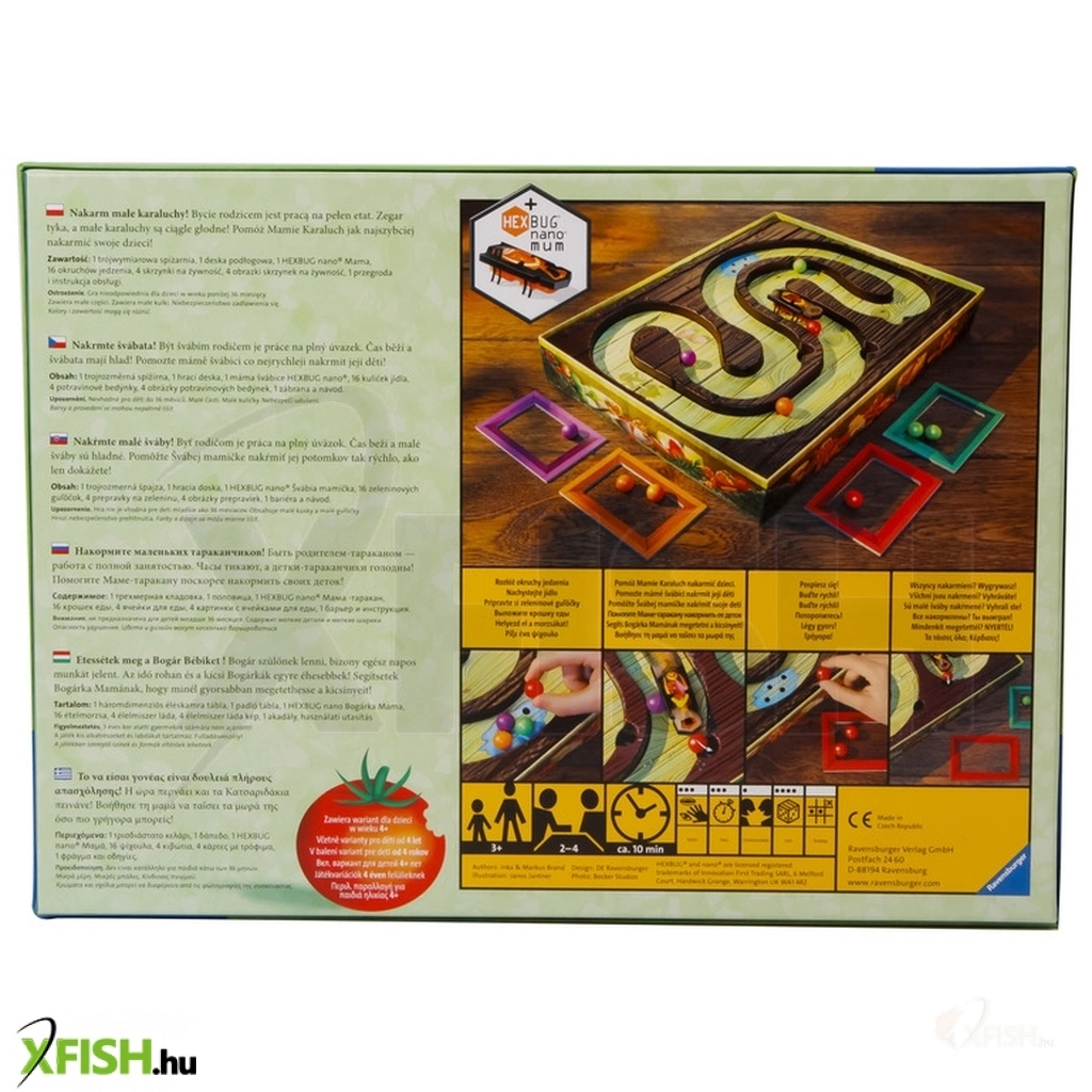Segíts csótány mamának megetetni kicsinyeit! Az Első Csótánykám társasjáték a Ravensburgertől izgalmas elfogalaltság minden fiatal számára. Csótány mamának sok gyereke született, segíts, hogy az összes kis utód jól lakjon! A magától futkározó bogár körbe-körbe halad a pályán. Neked az a feladatod, hogy úgy tedd a morzsákat, hogy azok a kis járatokba hulljanak, egyenesen a bababogarak szájába. Siess, hogy minél hamarabb jóllakjanak a porontyok, így megőrizve a csótány család békéjét. Az győz, aki a saját morzsáit a leggyorsabban eljuttatja a gyerekek számára. Hatalmas szórakozásban lesz részed a társasjáték segítségével, mialatt fejlődnek a logikai késségeid is. Gurítsd az ételmorzsákat és figyelj, mikor jön a csótánymama!