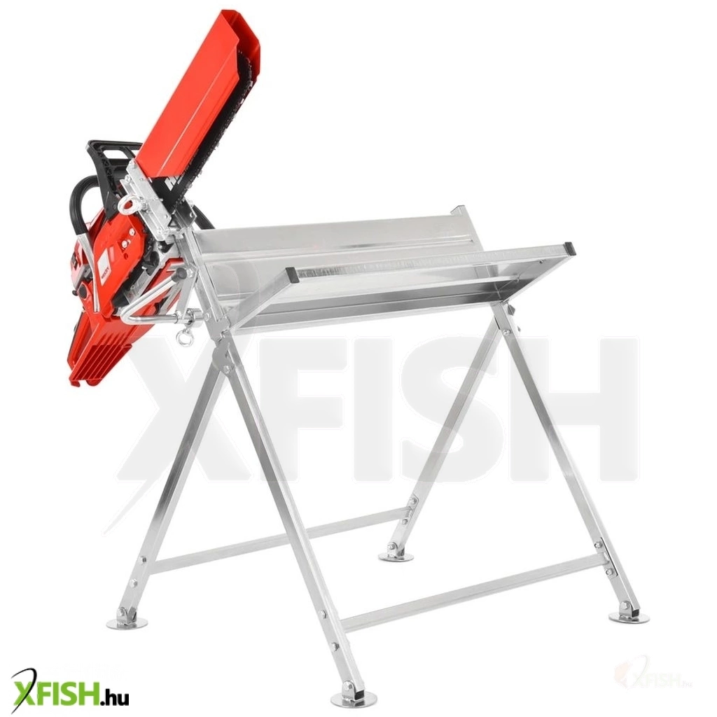 Állvány láncfűrészeléshez. Egyszerűen rögzítse a fűrészt az állványba, és biztonságosan vághat anélkül, hogy a nehéz fűrészt a kezében kellene tartania. Amikor nincs használatban, a tokban van, ami jelentősen csökkenti a sérülésveszélyt. Alkalmas minden típusú láncfűrészhez 7 kg súlyig és 45 cm-es hosszig.