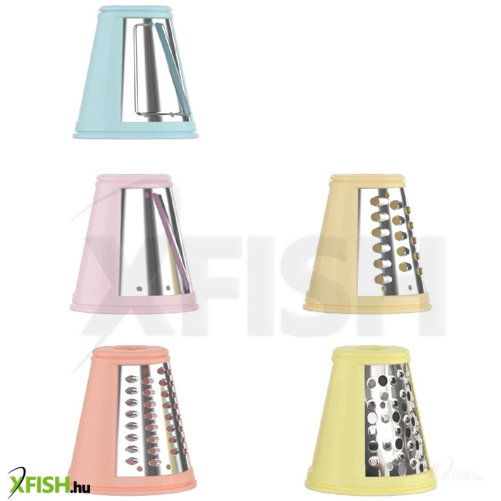 A készülékhez tartozó 5 db rozsdamentes acél dobkés lefedi a leggyakrabban használt konyhai műveleteket. A szeletelő, a durva és finom reszelő, a julienne vágó, valamint az aprító dob segítségével könnyedén készíthetők friss saláták, zöldségköretek, sajtreszelékek vagy akár látványos díszítések. Az éles, tartós kések precíz vágást biztosítanak, miközben hosszú távon is megbízható teljesítményt nyújtanak.