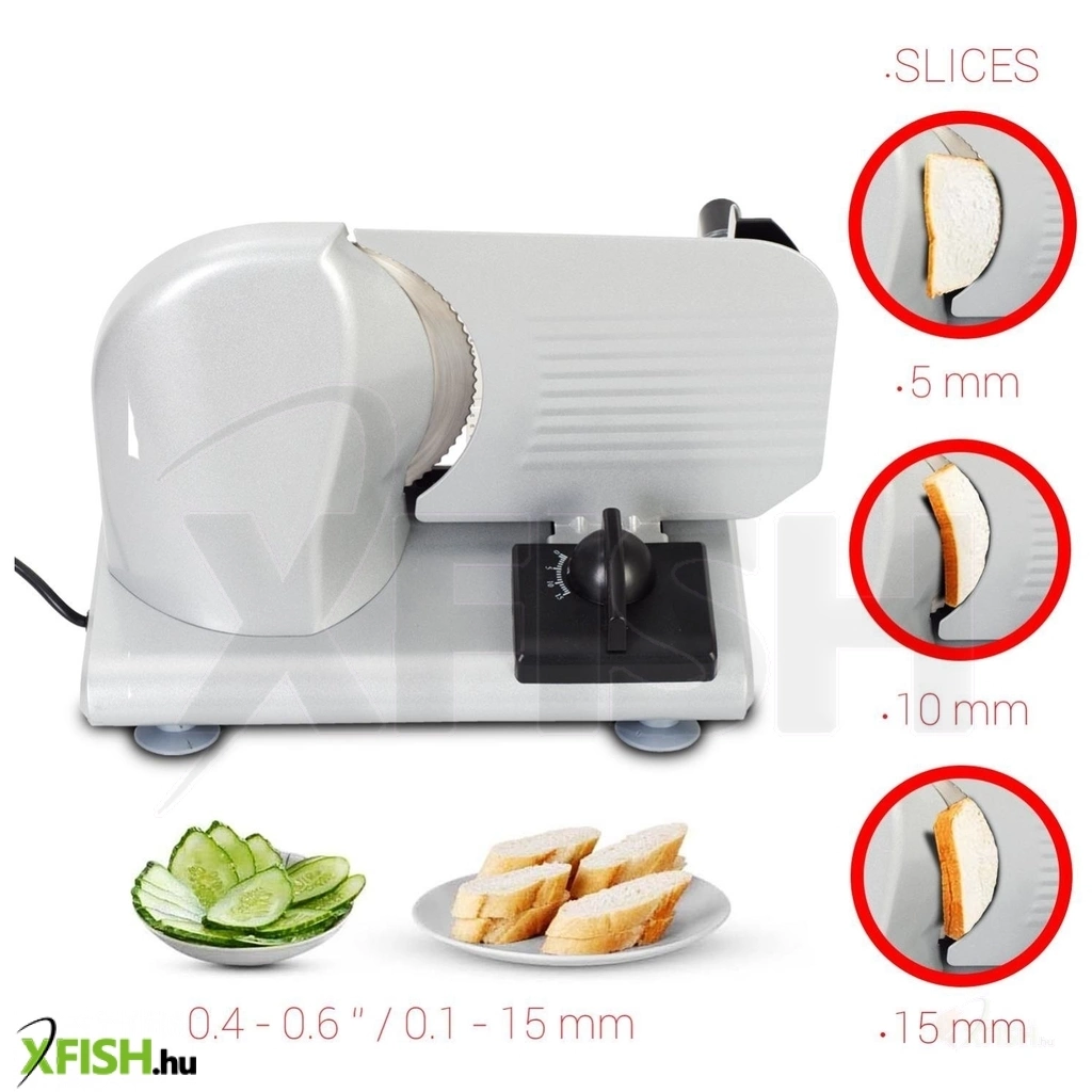 - Fokozatmentesen állítható szeletelési vastagság (0–15 mm)