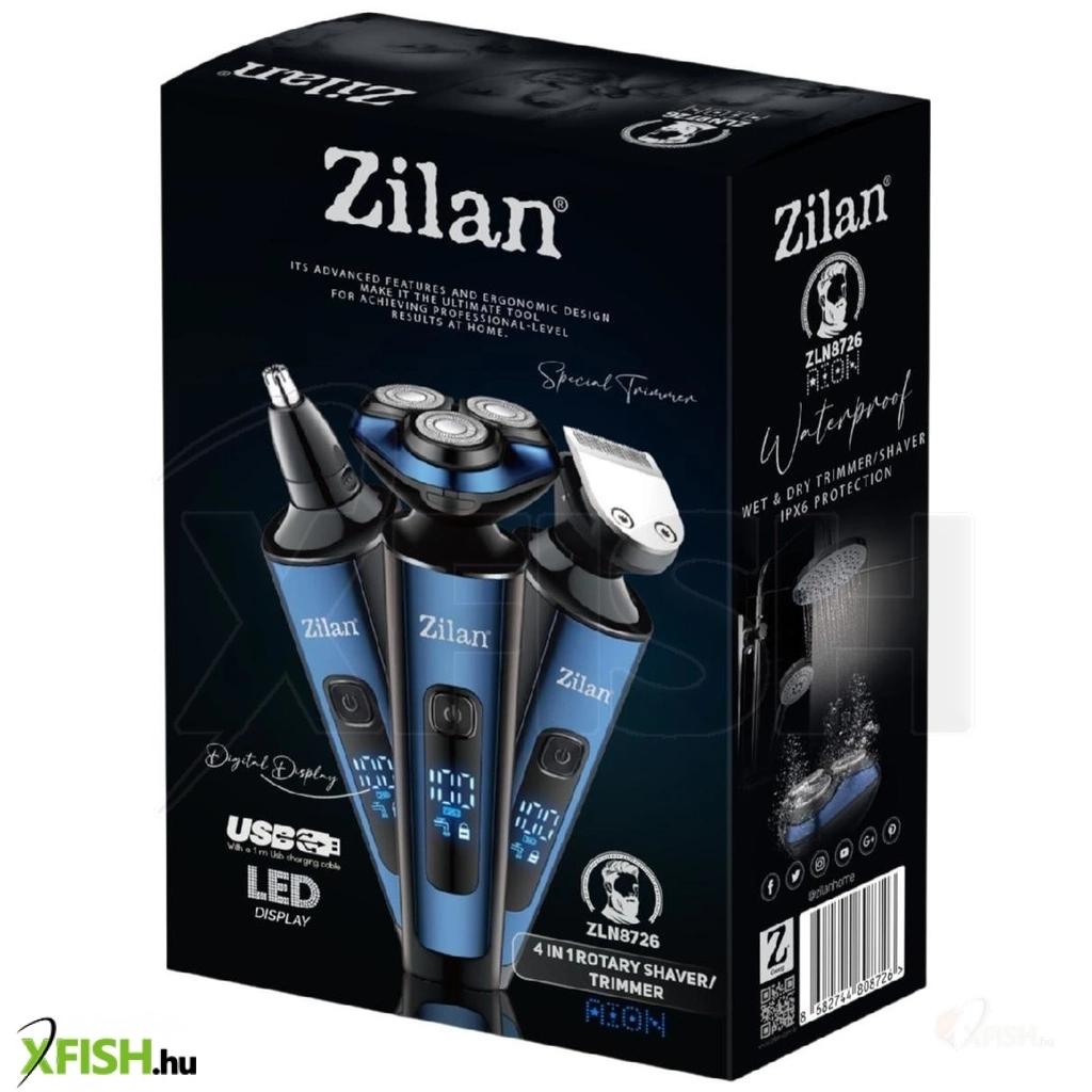 Zilan zln8726 aion borotva és trimmelő, vízálló kivitel, rozsdamentes acél pengék, akkumulátoros működés, LED kijelző