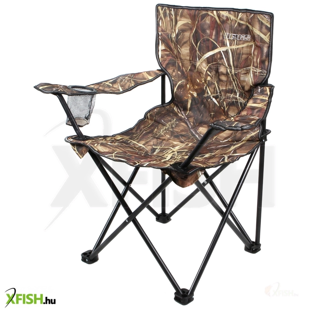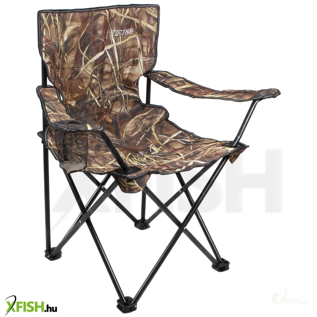 A Nevis Classic Összecsukható Pohártartós Horgász Szék praktikus és könnyen szállítható ülőalkalmatosság, amely ideális választás horgászathoz, kempingezéshez vagy bármilyen szabadtéri programhoz. A stabil, összecsukható acélvázas szerkezet gyorsan felállítható és kompakt méretre csukható, így egyszerűen szállítható és kis helyen is elfér. Az ülőfelület erős, strapabíró terepszínű vászonból készült, amely jól ellenáll a kültéri használat során fellépő igénybevételnek. A kartámaszba épített hálós pohártartó kényelmesen elérhető helyet biztosít italok vagy kisebb tárgyak számára, így minden fontos eszköz kéznél lehet a horgászat közben. A székhez praktikus vállra akasztható hordtáska is tartozik, amely megkönnyíti a szállítást és a tárolást. A kb. 40×50 cm ülőfelület, 45 cm háttámla, valamint a mindössze kb. 1,8 kg-os súly kényelmes és mobil megoldást kínál rövidebb vagy akár hosszabb horgászatok során is.
