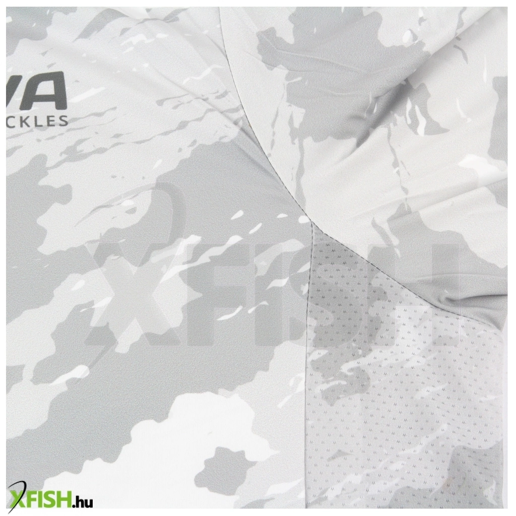 A Reiva Team UV Jersey Hosszú Ujjú Póló Maszkkal Camo kifejezetten horgászok számára tervezett technikai ruházat, amely hatékony védelmet nyújt a napsugárzás ellen, miközben kényelmes viseletet biztosít meleg időben is. A hosszú ujjú kialakítás és az egybevarrt arcvédő maszk segít megvédeni az arcot, a nyakat és a karokat a káros UV-sugaraktól, így ideális választás hosszabb vízparti horgászatokhoz. A rugalmas, légáteresztő Knitted Stretch Fiber anyagból készült póló jól szellőzik, gyorsan szárad és hatékonyan vezeti el az izzadságot, így egész nap komfortos viselet marad. A 100% poliészter alapanyag könnyű, tartós és szabad mozgást biztosít dobás vagy fárasztás közben. A modern fehér-szürke camo mintázat nemcsak stílusos megjelenést ad, hanem segít a környezetbe olvadni, ami különösen hasznos lehet cserkelő vagy pergető horgászatnál. A póló elsősorban pergető horgászok számára készült, de feeder és bojlis horgászoknak is kiváló választás a nyári hőségben.