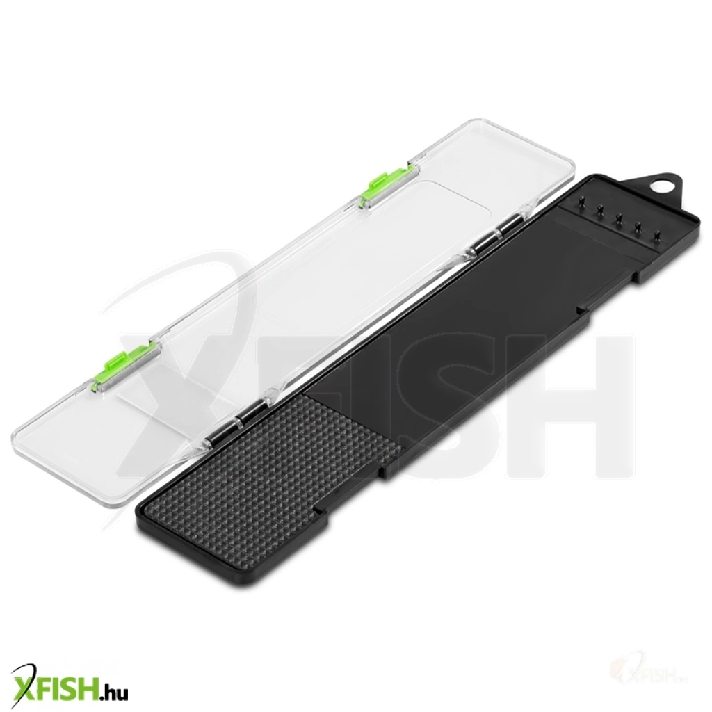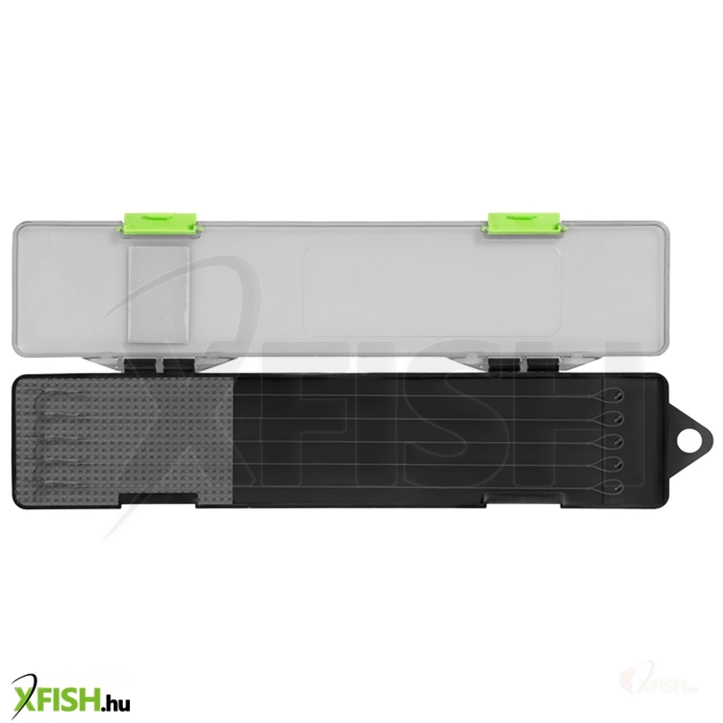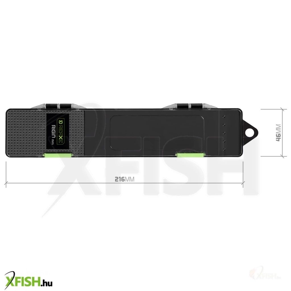 A felső rész átlátszó műanyagból készült, így a benne tárolt előkék tökéletesen láthatók a doboz kinyitása nélkül. Két erős csattal záródik, amelyek biztosítják, hogy a RIGIN mini még egy teljesen megpakolt táskában se nyíljon ki véletlenül. Kompakt méretének köszönhetően szinte alig foglal helyet, miközben jelentősen felgyorsítja a vízparti előkészületeket.